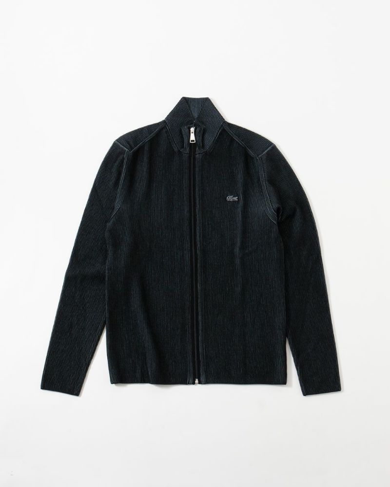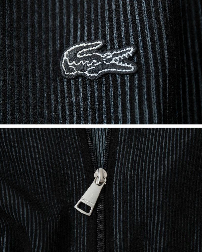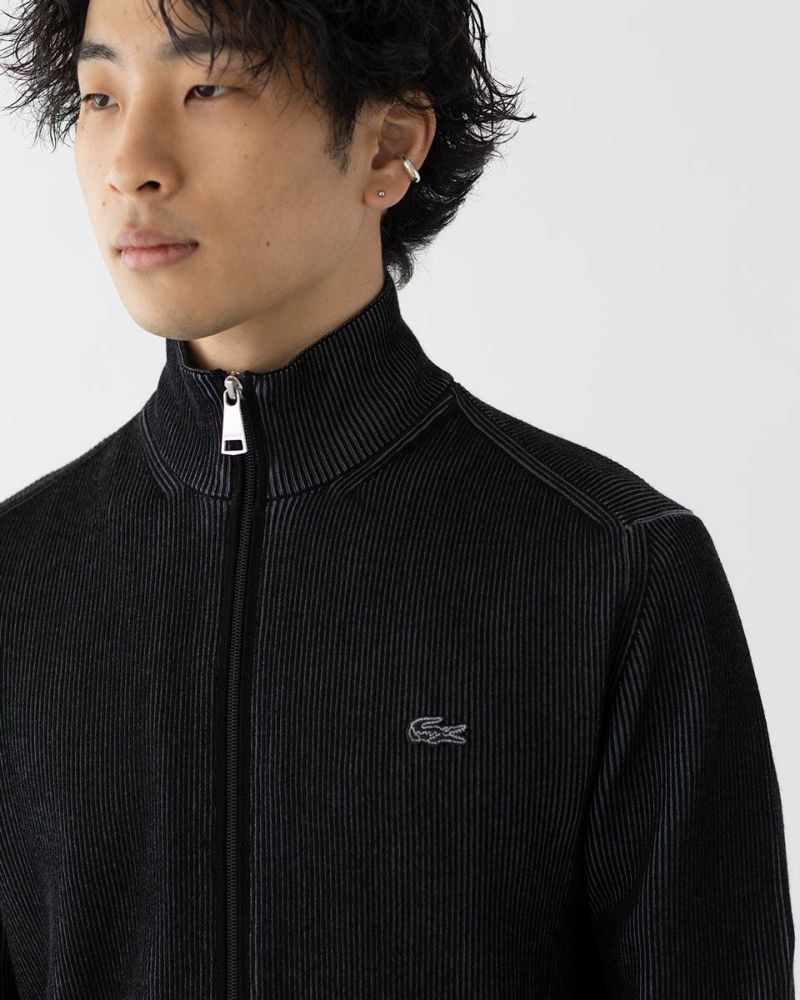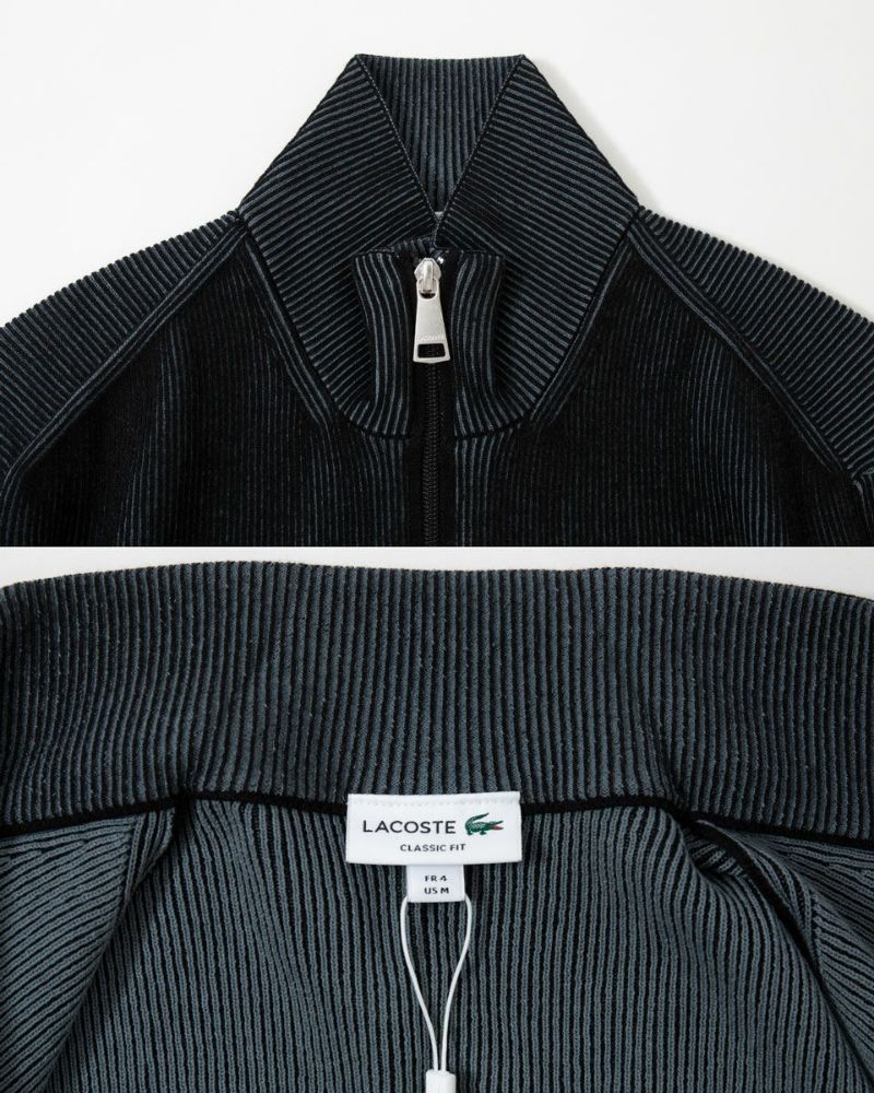 高級感のある大人のテイストが人気を博すラコステのスポーツウェア。こちらはリブ編みの美しいウネが映えるシックなトラックジャケットです。
