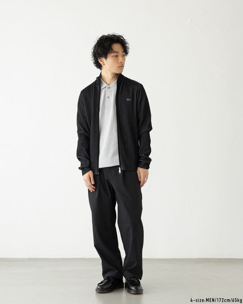 モダンに着こなせるリブ編みトラックジャケット ラコステ リブニットトラックジャケット ドライバーズニット モード LACOSTE AH9312-10 メンズ