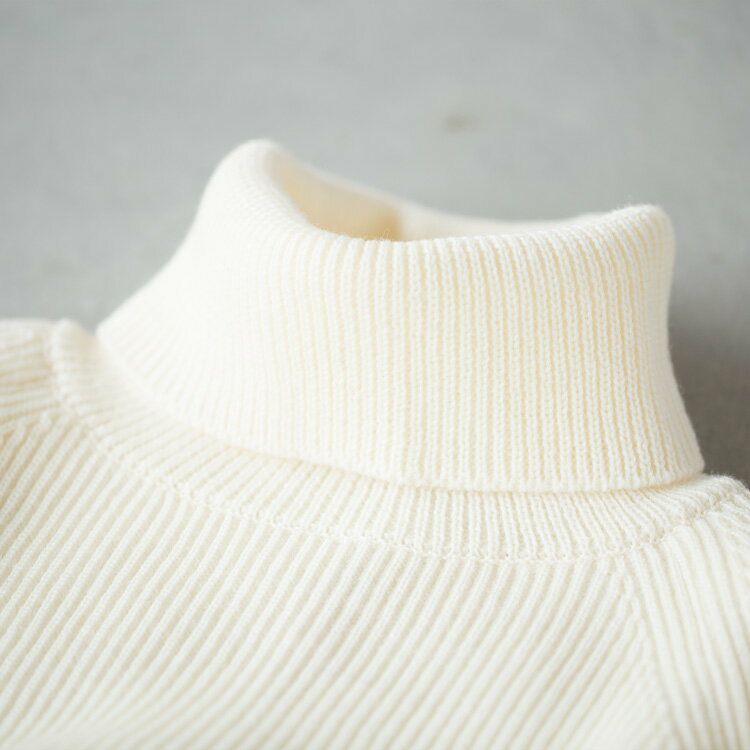 網目の詰まった8ゲージの畦編みが暖かい、上品な印象のタートルネックセーターです。