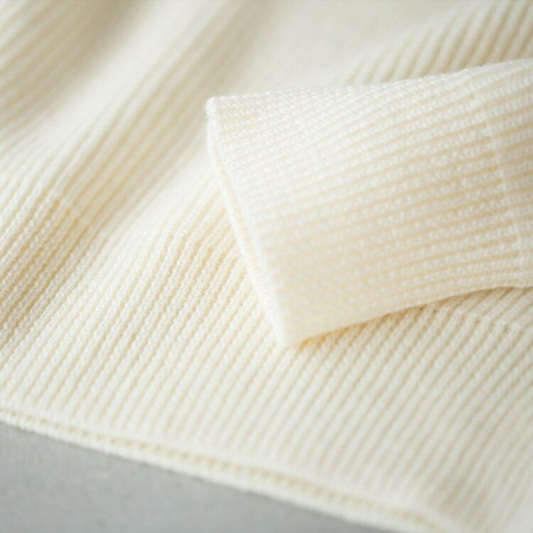 国内生産による高いクオリティーも嬉しい、日々の着こなしに寄りそうシンプルセーター、いかがでしょうか。