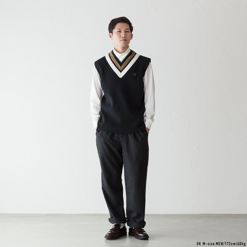 他の画像を見る モダンアレンジが新鮮なチルデンベスト。 フレッドペリー チルデン ベスト K4527 ストライプド Vネック タンクトップ Striped V-Neck Knitted Tank 販売価格 ¥ 18,700 税込 カートに入れる お気に入りに登録する