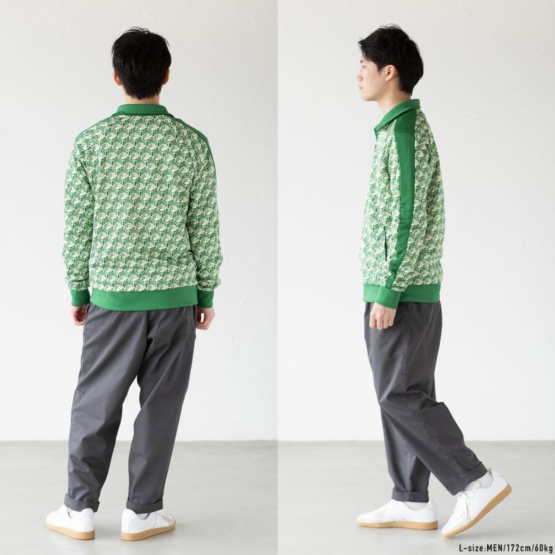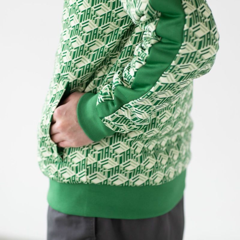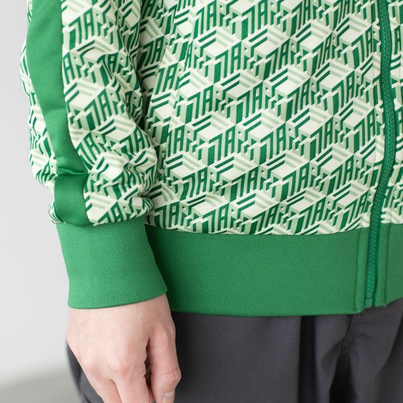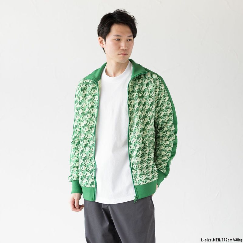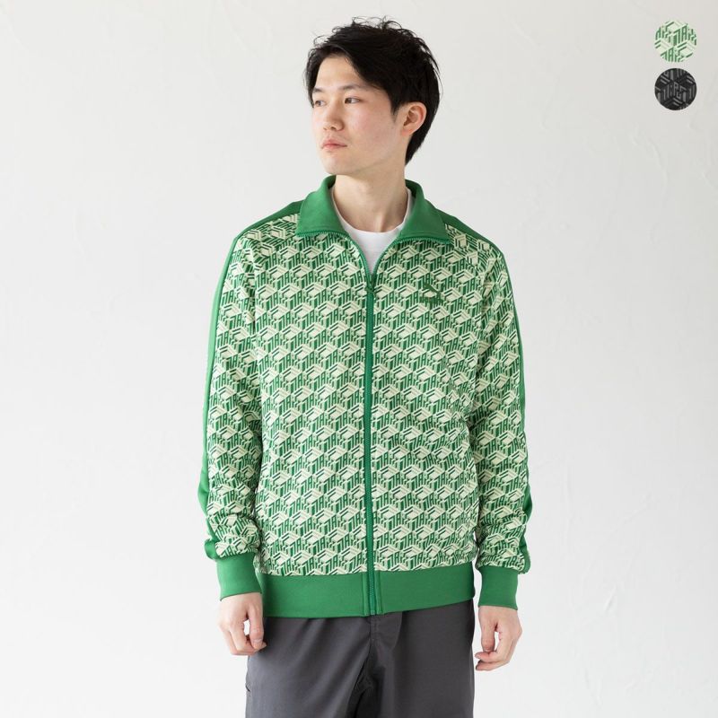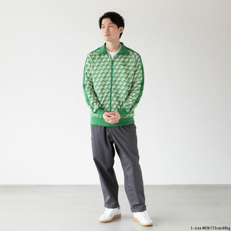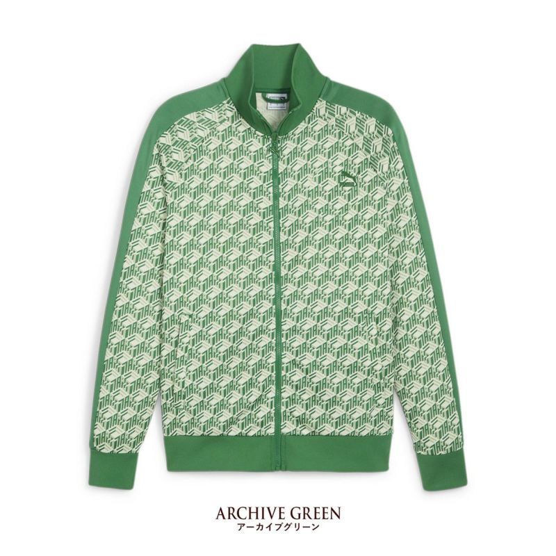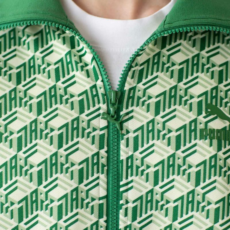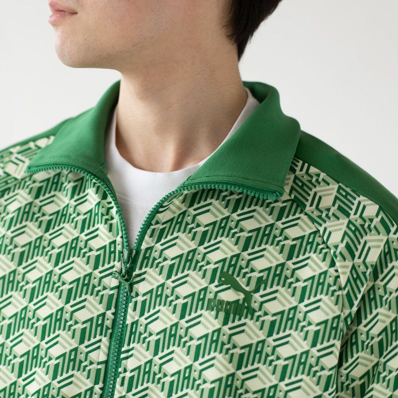 幾何学模様にPUMAの4文字を取り込んだ、ユニークで華やかなモノグラム柄のT7ジャージ。