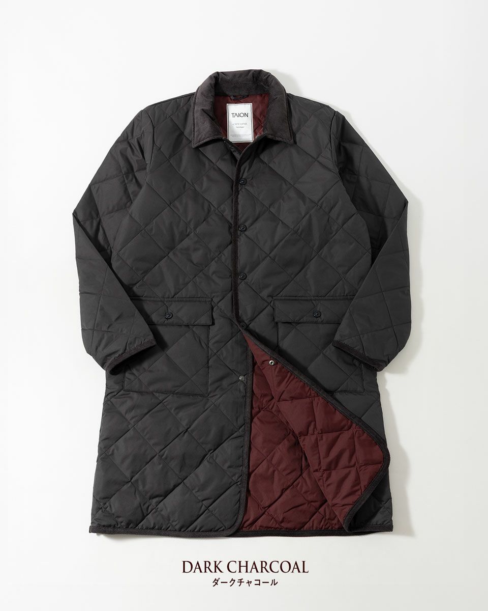 他の画像を見る ダイヤモンドキルトの都会派ロングコート。 タイオン シティ パイピングカラー ロングダウンコート TAION-109CI-LONG メンズ レディース キルティングコート 販売価格 ¥ 15,950 税込 カートに入れる お気に入りに登録する
