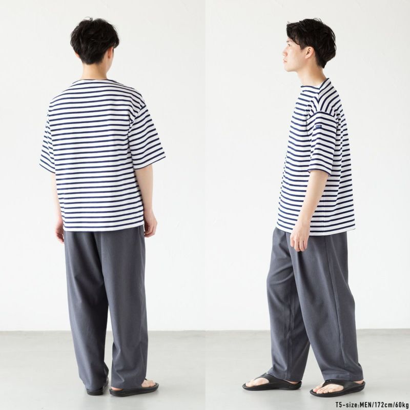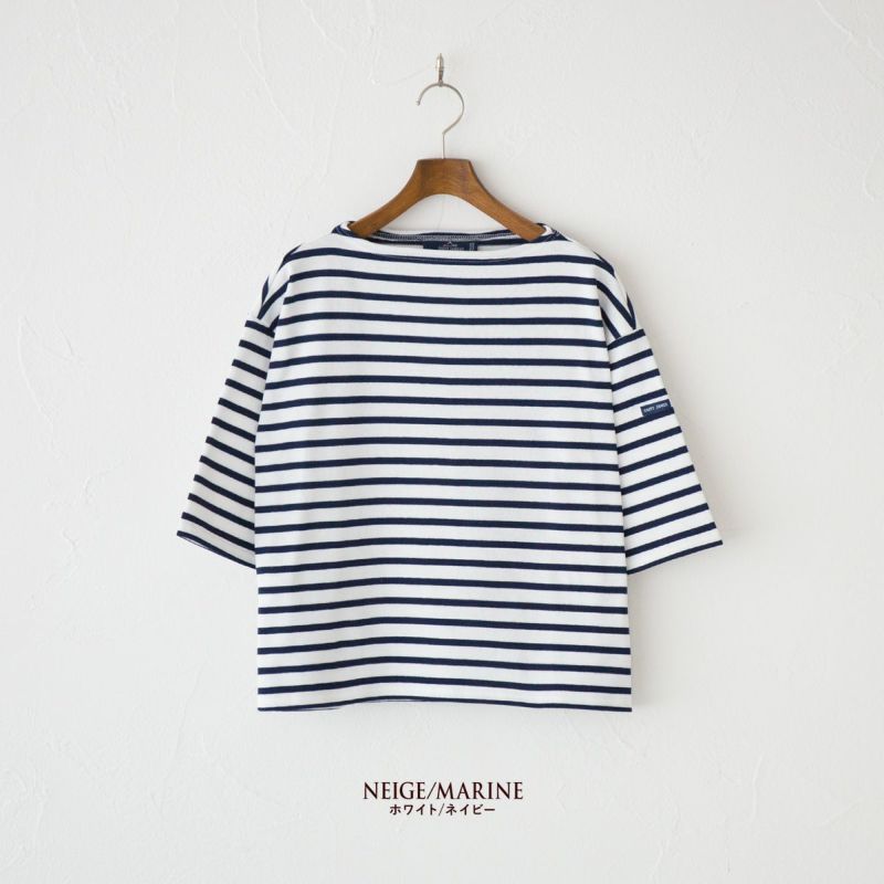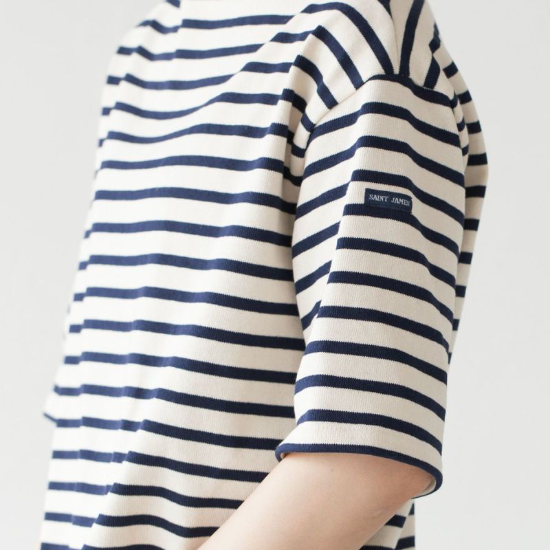 SAINT JAMESの定番、ウエッソンの生地で仕立てたドロップショルダー五分袖カットソー。