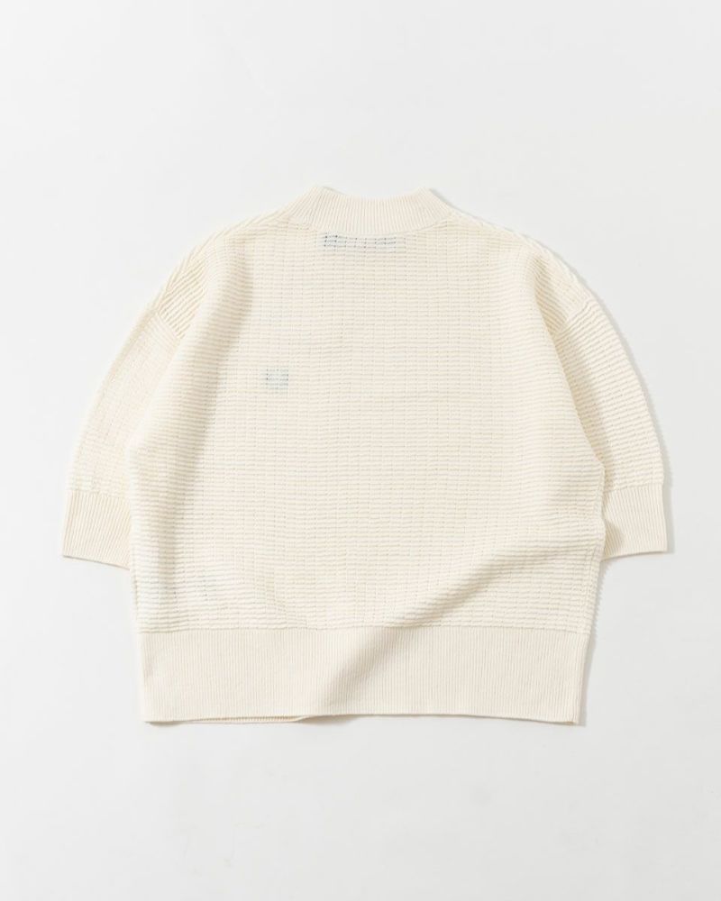 柔らかさと程よいハリ感のあるニット地。肌なじみの良い綿麻素材で伸縮性・吸水性も◎。品の良い透け感と、夏爽やかに着れる通気性も備えた着心地抜群の素材をチョイス。