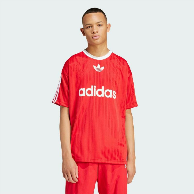 サッカーユニフォームを彷彿させるデザインのルーズフィットTシャツ。