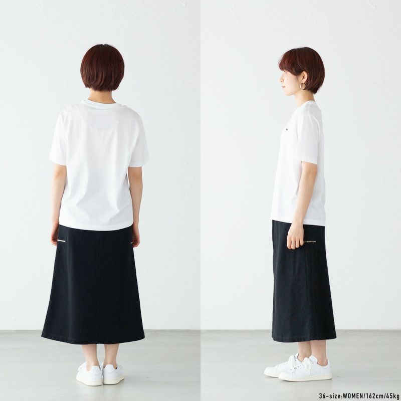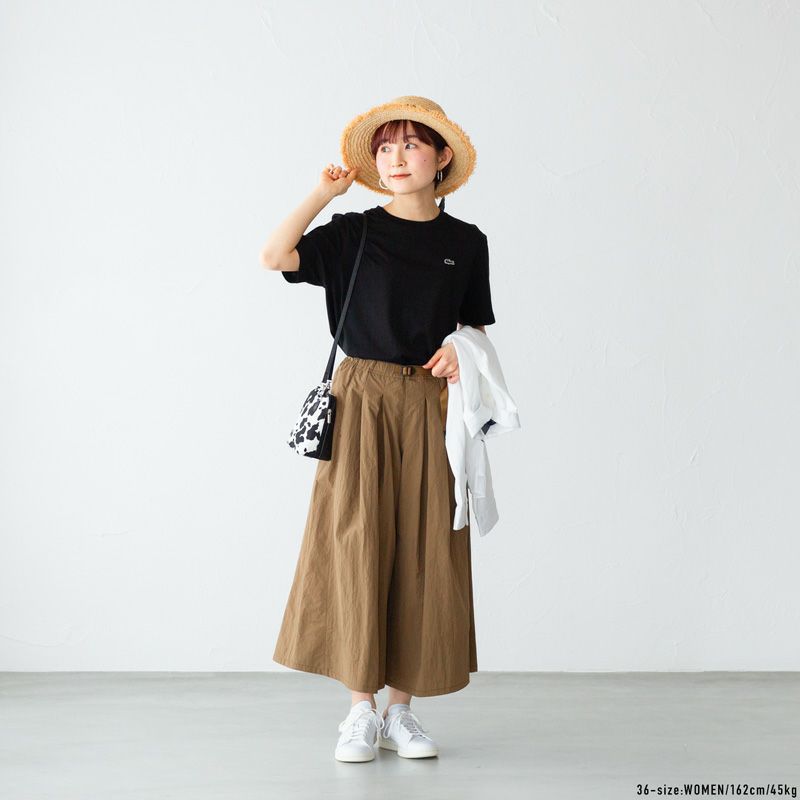 体のラインを拾いにくい絶妙なフィット感と、かつゆるすぎないシルエットで、Tシャツ一枚でも女性らしく着こなせます◎