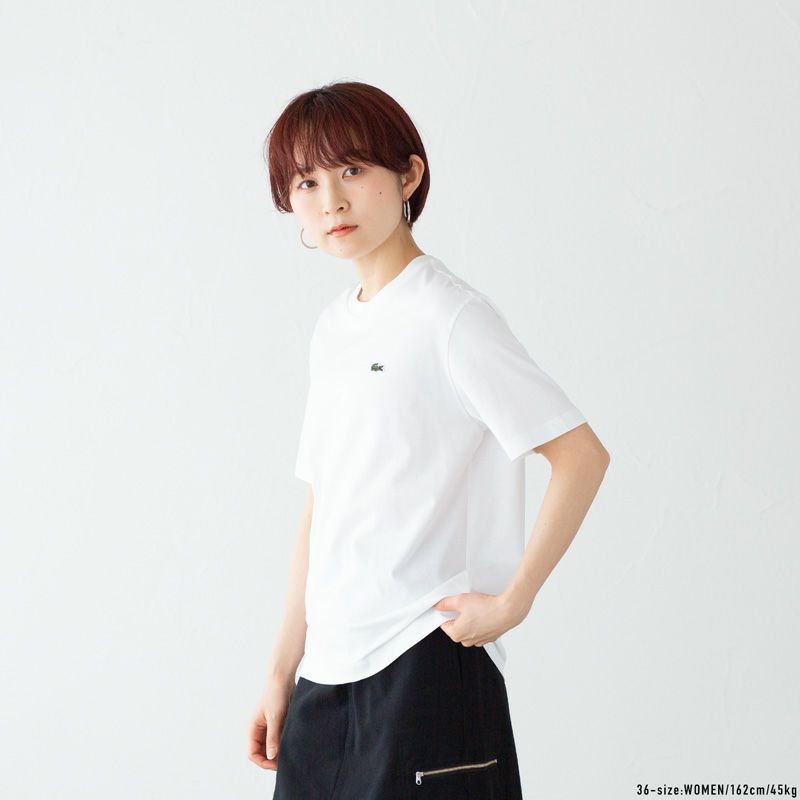 ややゆったりなシルエットとソフトな肌触り。ラコステワンポイントのシンプルTee。