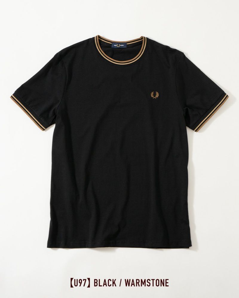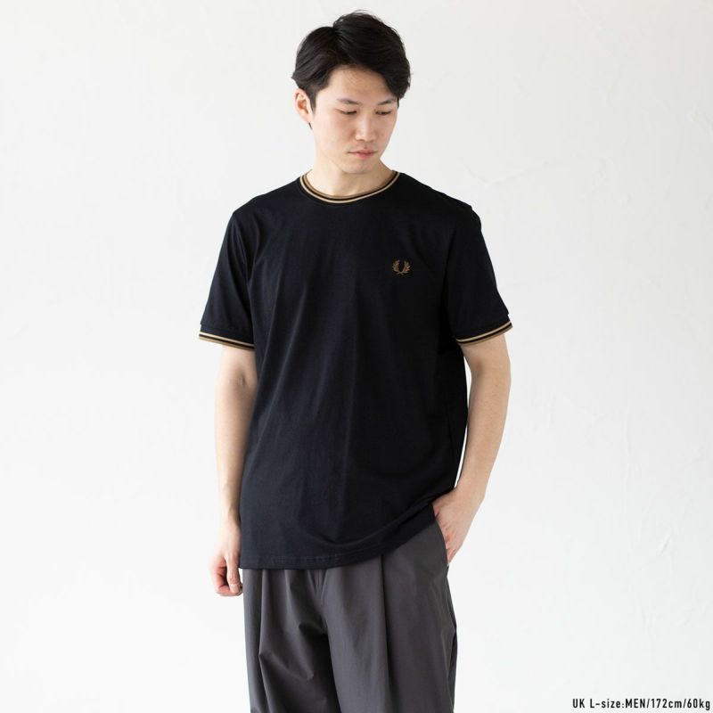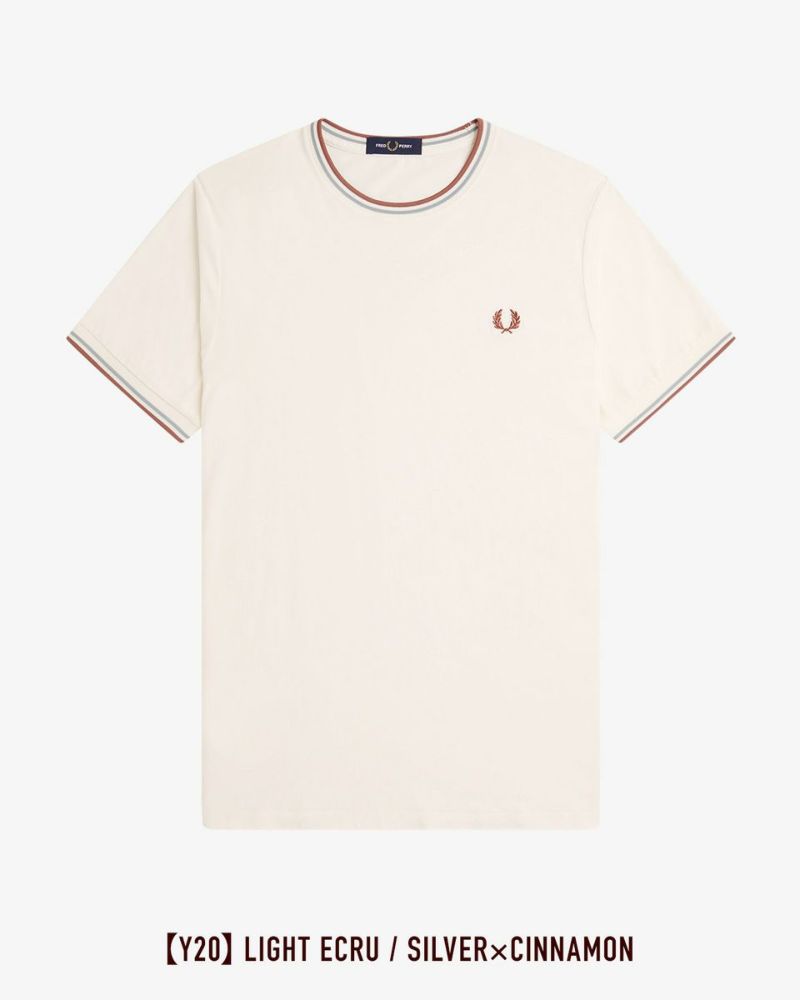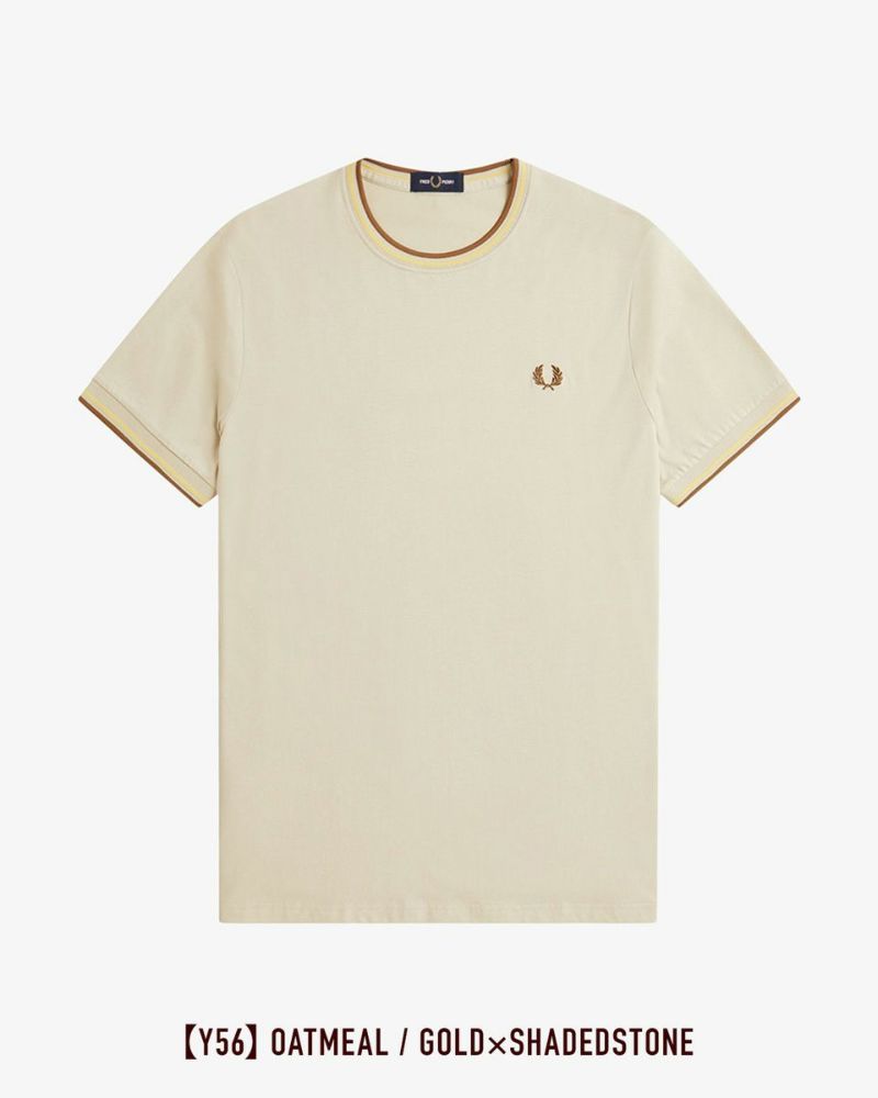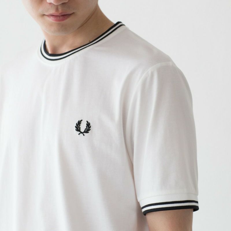 FRED PERRYの代名詞、M12ポロなどに配される伝統のティップラインとローレル刺繍を纏ったTシャツ。