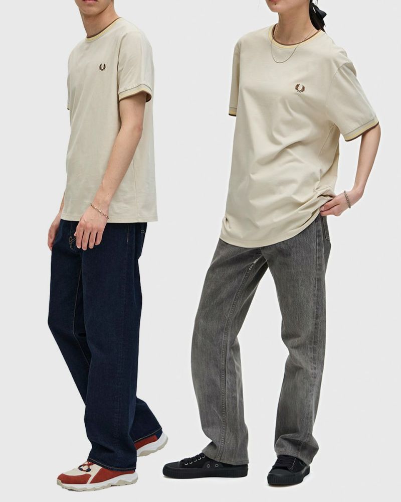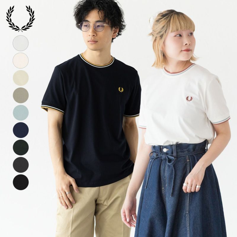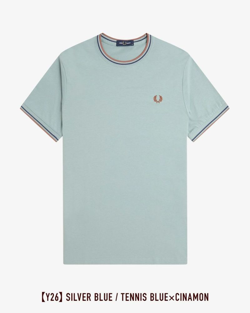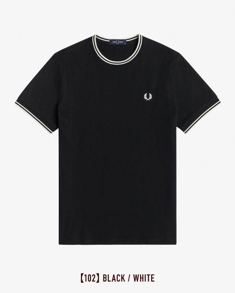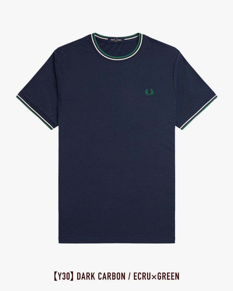 FRED PERRYの代名詞、M12ポロなどに配される伝統のティップラインとローレル刺繍を纏ったTシャツ。