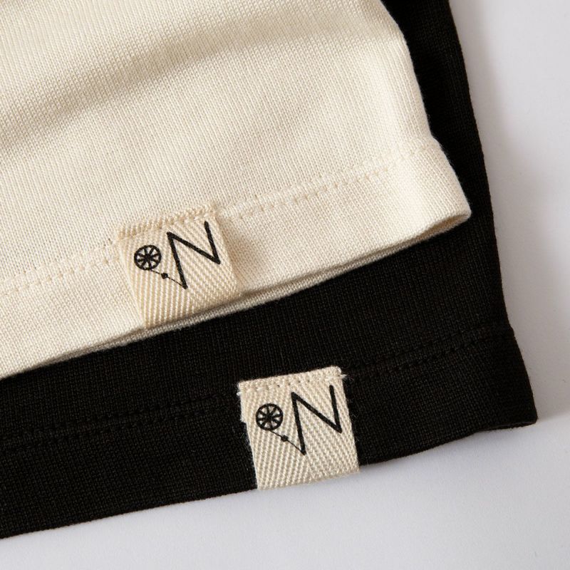 普段着として気兼ねなくデイリーに着れるよう、耐久性と伸縮性が必要なバインダーネックにはオーガニックコットンのリブを採用。