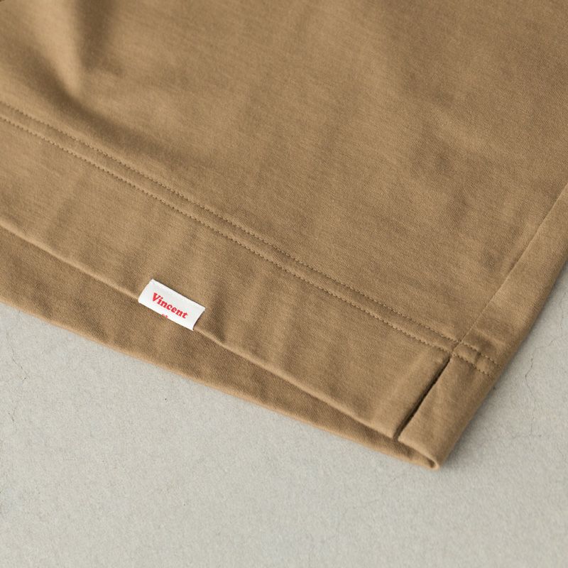 フランス、ブルゴーニュ地方の老舗ワークウエアブランド、“ヴァンソンエミレイユ”の歴史と精神を継承した日本企画のMADE IN JAPANプロダクト。こちらはさらりとしたコットン素材のクルーネックTシャツ。やや広めにラウンドしたカッティングがネックラインを綺麗に見せてくれます。