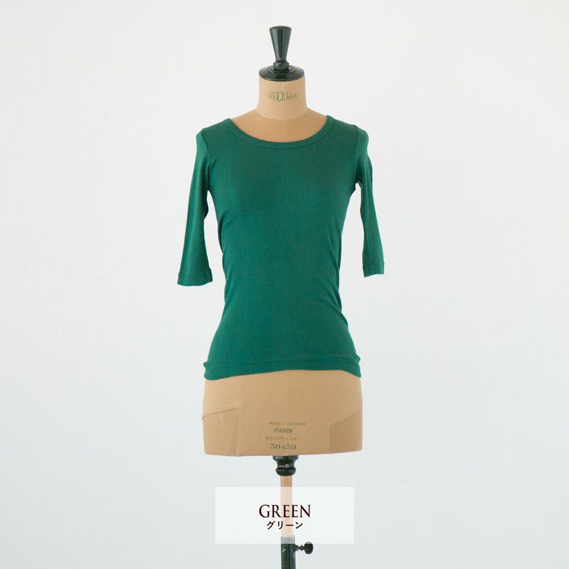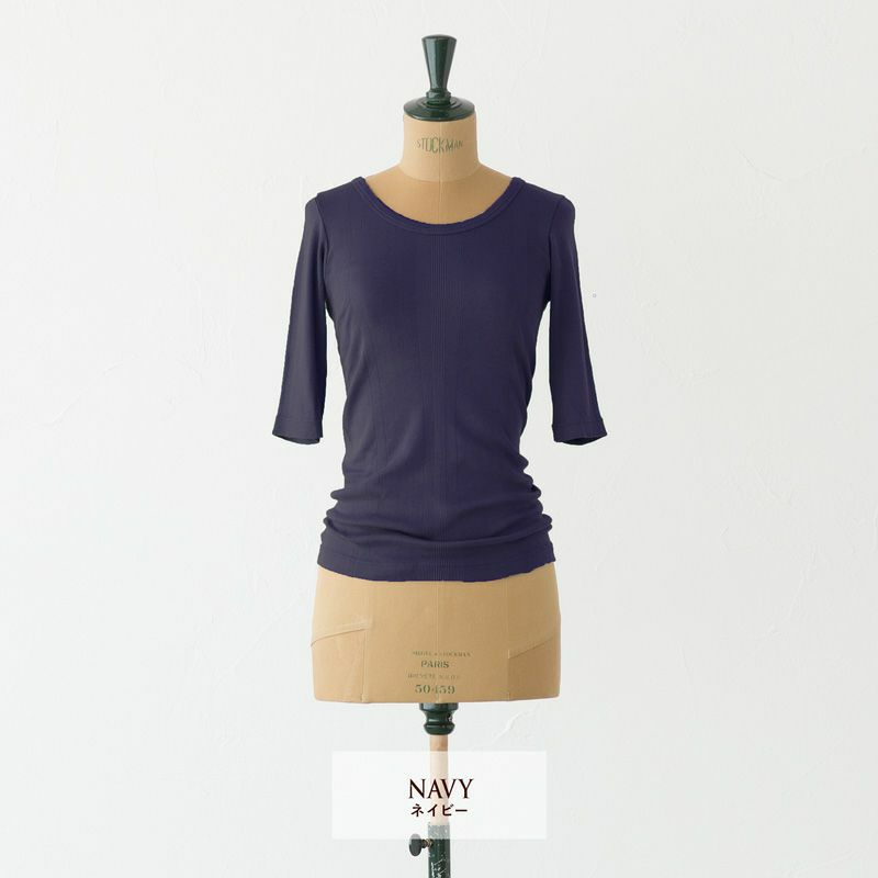 伸縮性◎。しっかりリブニットの上品カットソー。
