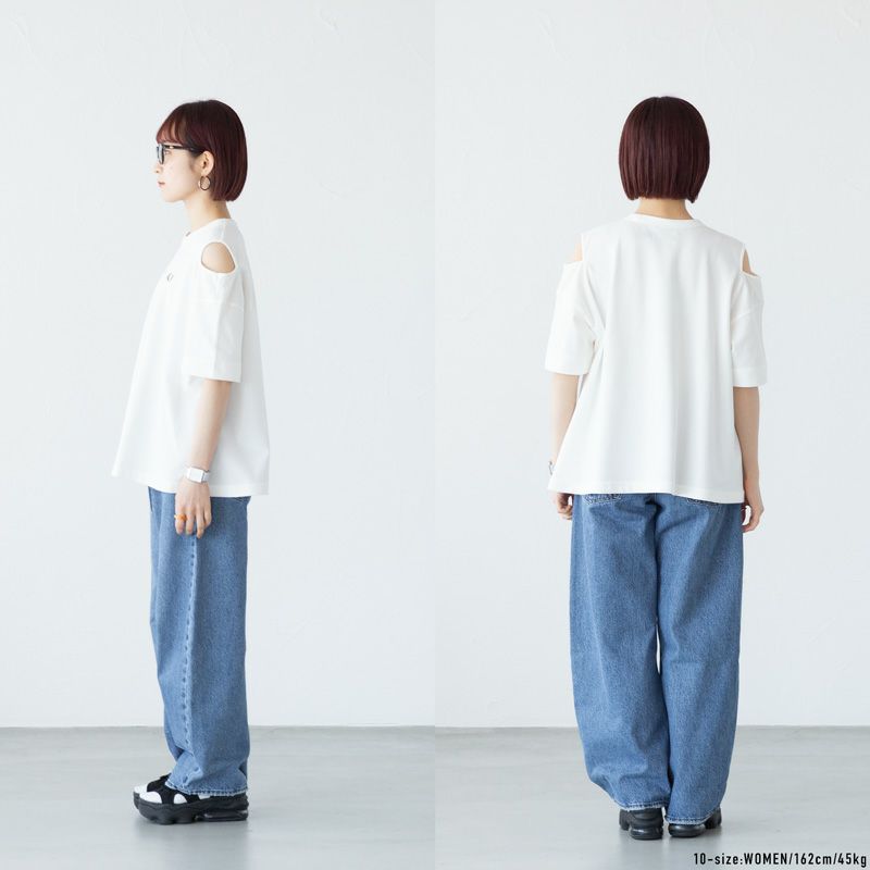 ヘルシーな肌見せで華奢見え。鹿の子素材のデザインTee。