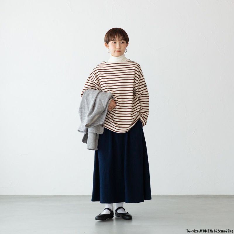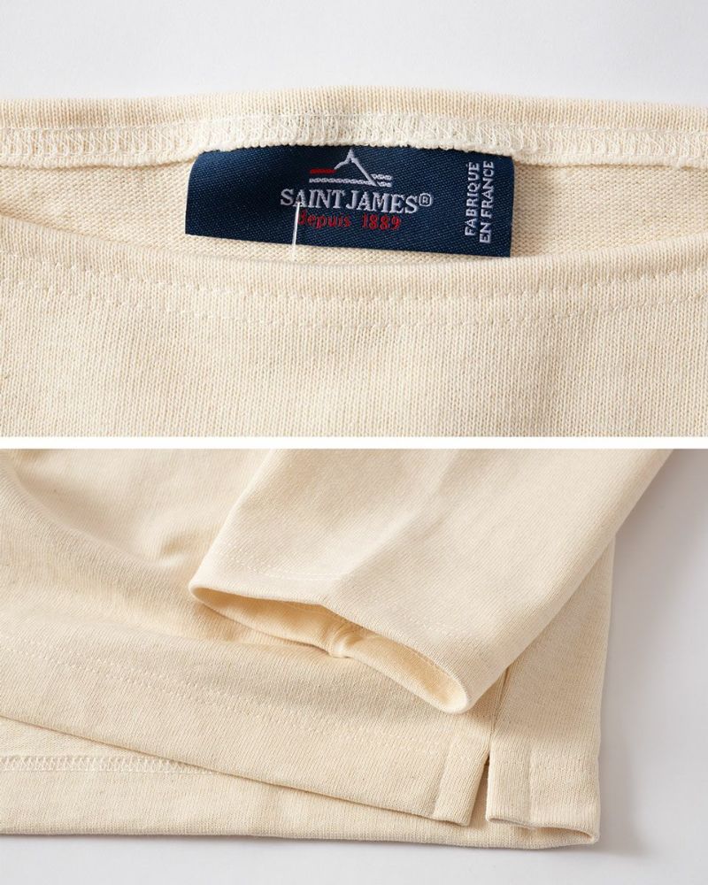 ボートネックや九分袖などキホンのディテールは定番ウエッソンと一緒。ドロップショルダーと裾のスリットを備えることでモダンなエッセンスをプラスしています。