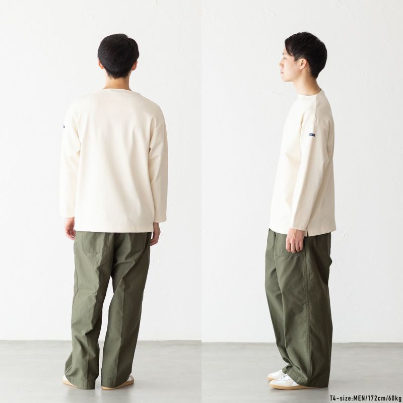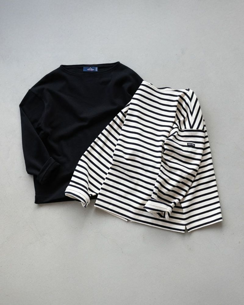 大人気のドロップショルダーシリーズ。こちらはしっかりウエッソン生地&オーバーサイズに着れるルーズシルエットのバスクシャツです。