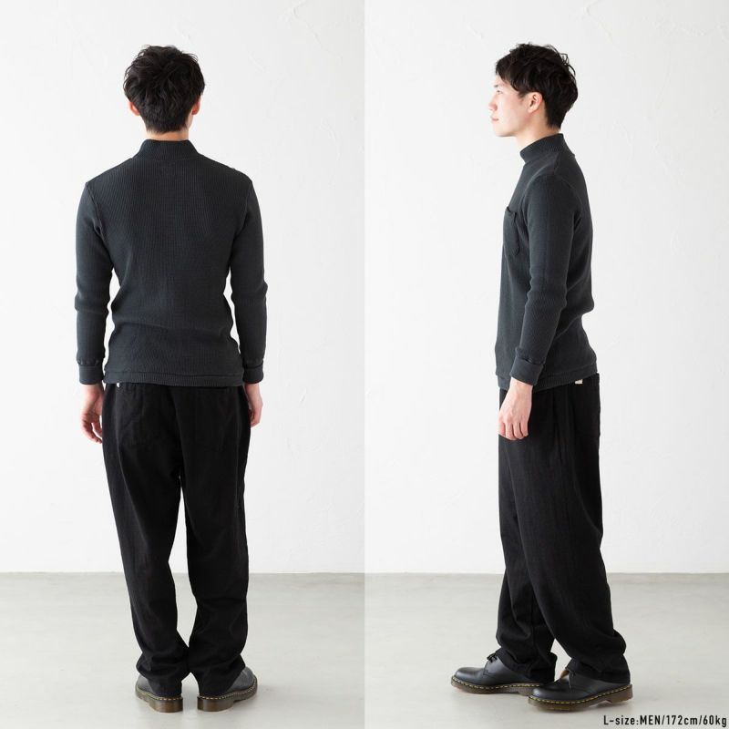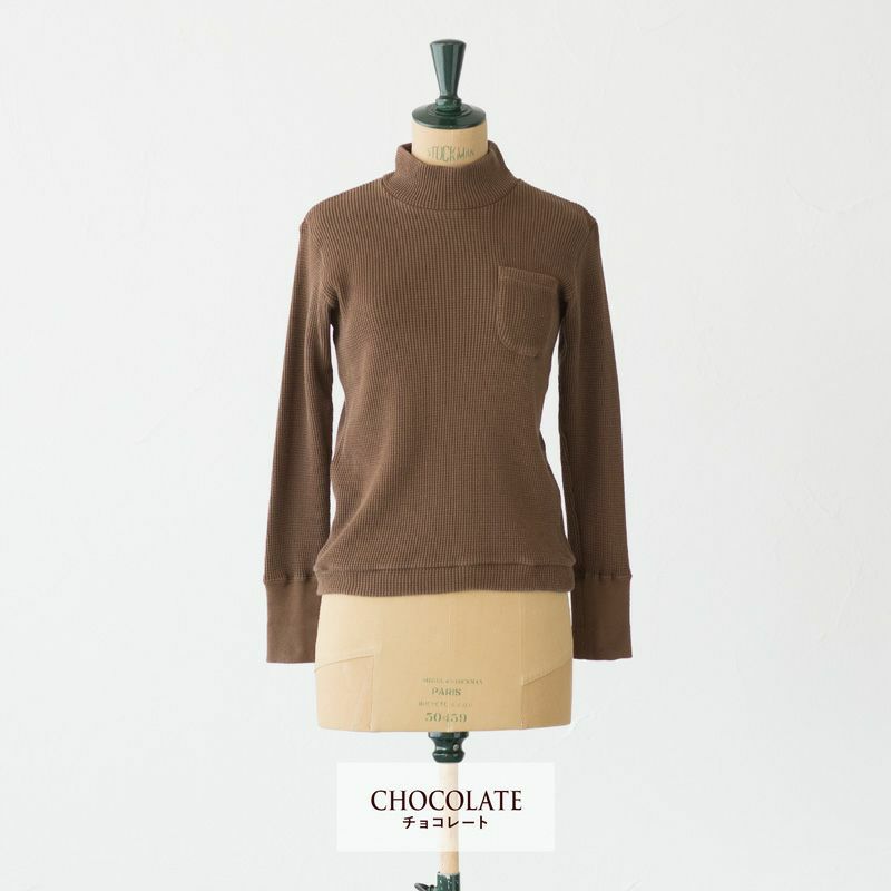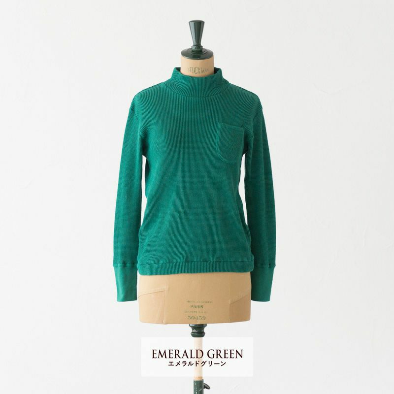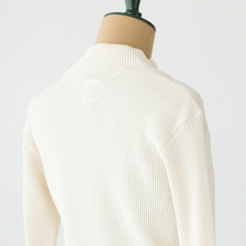 適度な厚みがあり、着伸びしないワッフル。一枚着で気になる透け感もなく、レディースアイテムながらどこか無骨なかっこよさも兼ね備えた生地です。