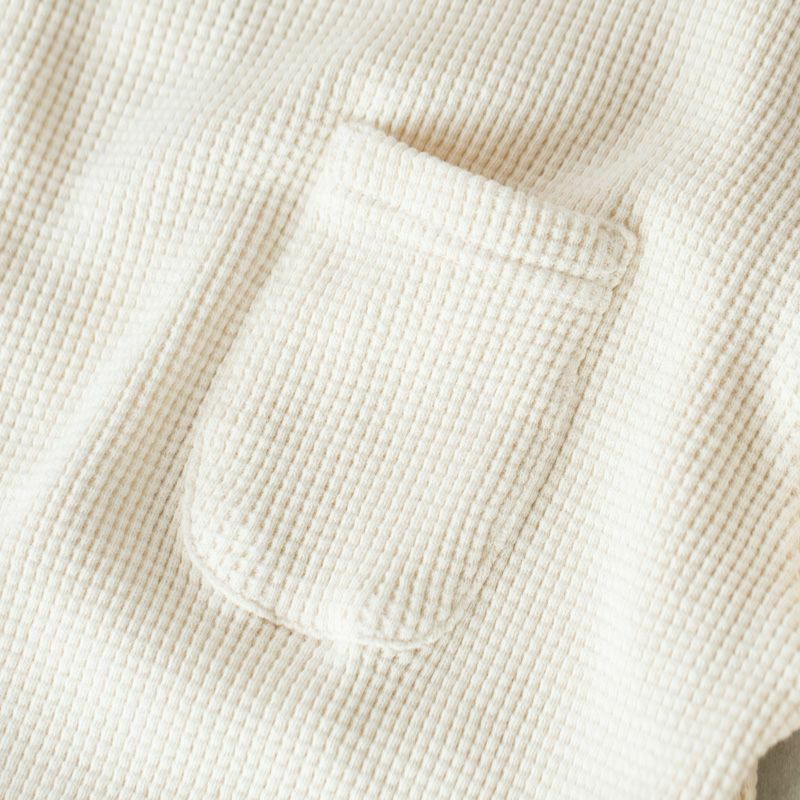 生地メーカー発のファクトリーブランドである「Hight Flutter」のワッフル生地は、貴重な旧式のフライス機を使って編まれたクラシックな仕上がり。