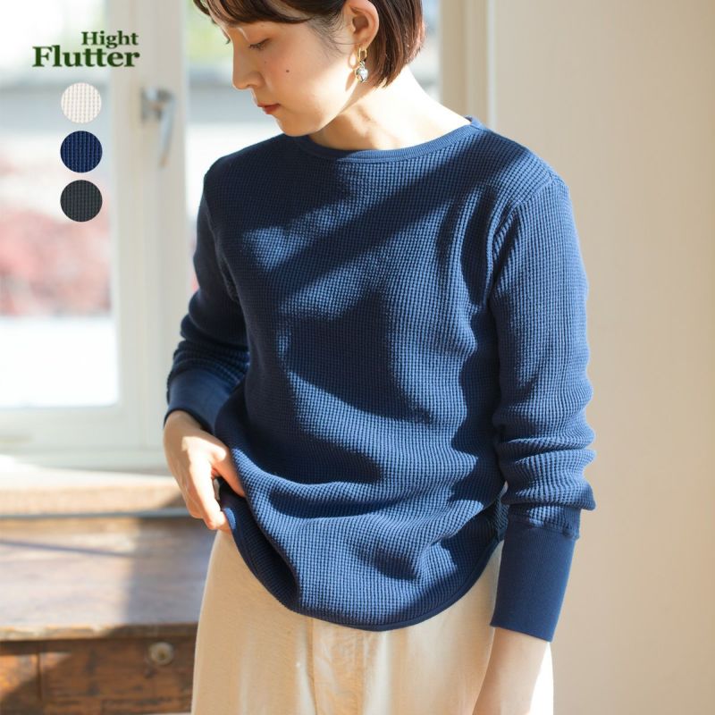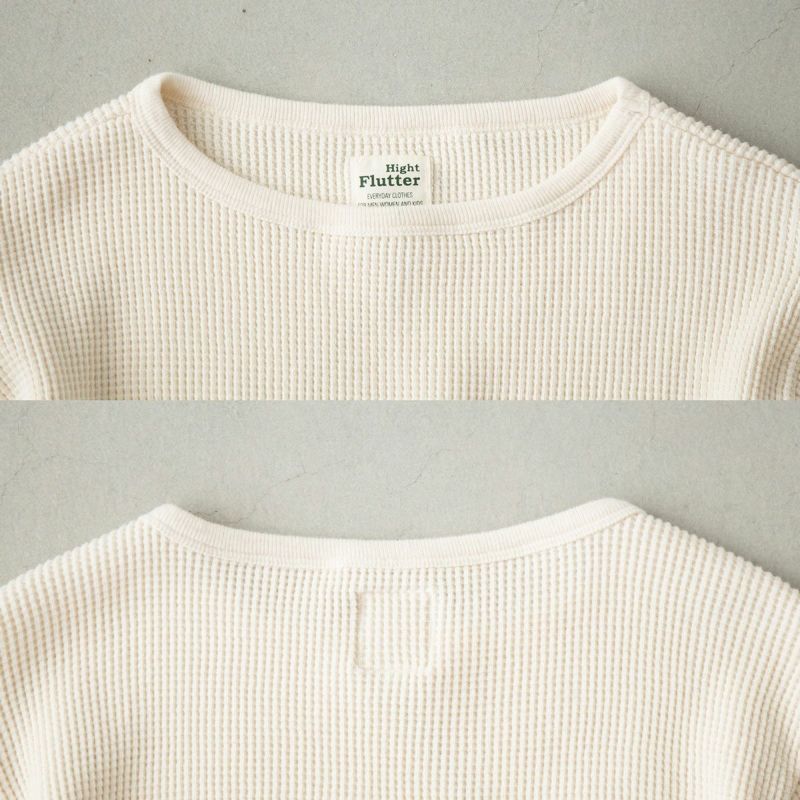 生地メーカー発のファクトリーブランドである「Hight Flutter」のワッフル生地は、貴重な旧式のフライス機を使って編まれたクラシックな仕上がり。