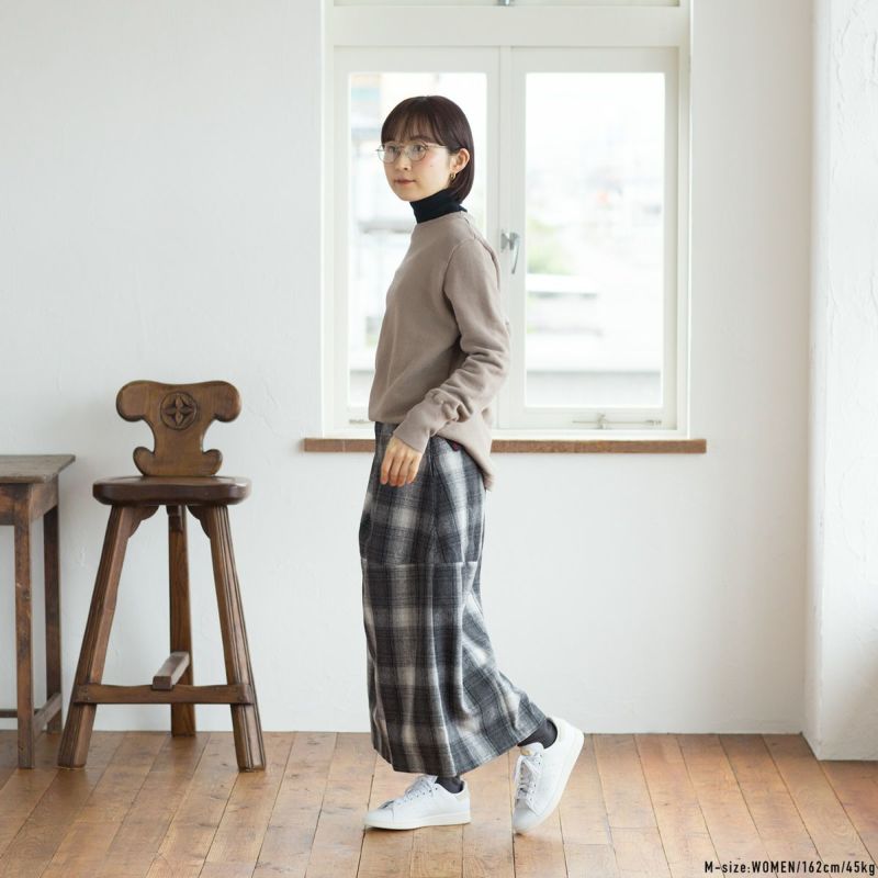 両サイドには控えめなスリット入り。トップスのバランスがとりやすく、レイヤードスタイルにもおすすめ。