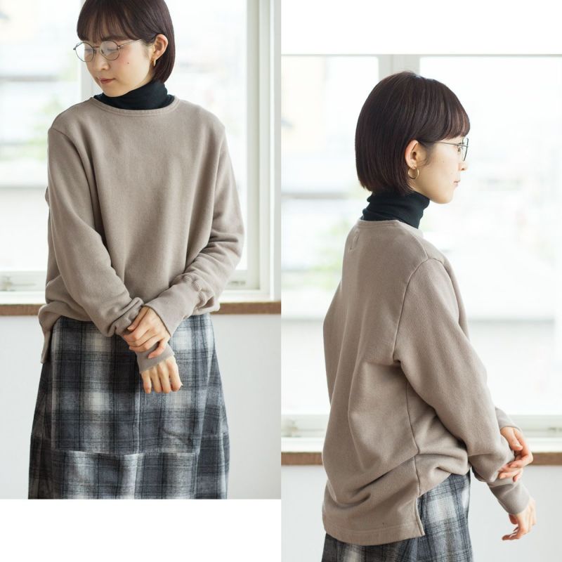ふわっと軽くて柔らかく、かつ丈夫。包み込まれるようなぬくもりを感じられるループ裏毛のプルオーバーです。