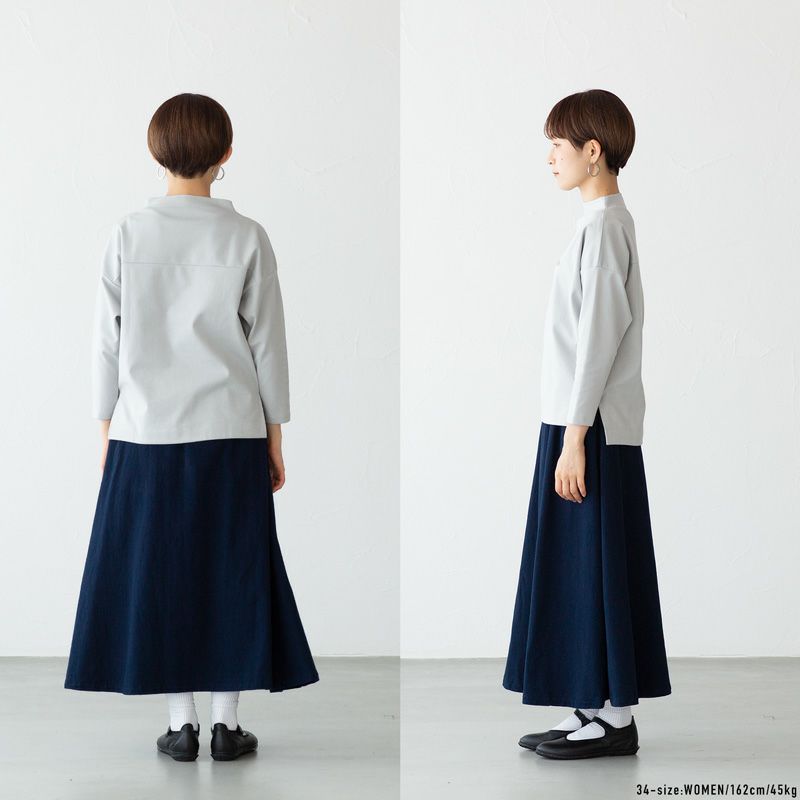 適度な厚みとハリ感のあるミラノリブ生地を使ったプルオーバーシャツ。ボトルネックの形が綺麗にでるので首元すっきり。体のラインを拾わないので、気になる体型を自然にカバーしてくれるのも嬉しいポイントです◎