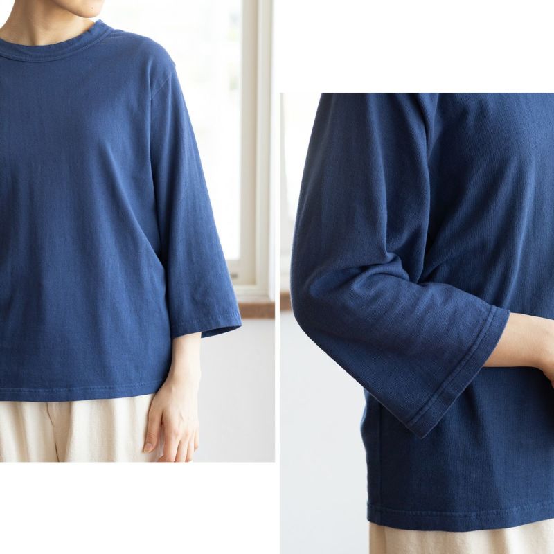 気になる二の腕もすっぽりカバーしてくれる7分袖、体のラインを拾いにくいきもちワイドな身幅も着やすさのポイント。