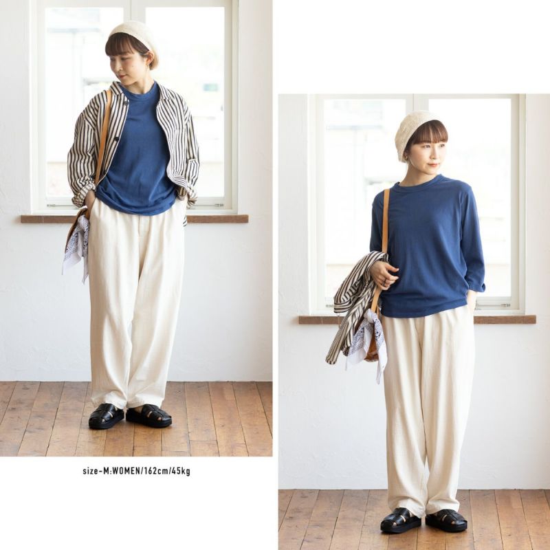 空気を含んだような生地感は、通気性・吸水性が◎。洗うたびにしっとりと肌になじみ、自分だけの風合いに育っていきます。