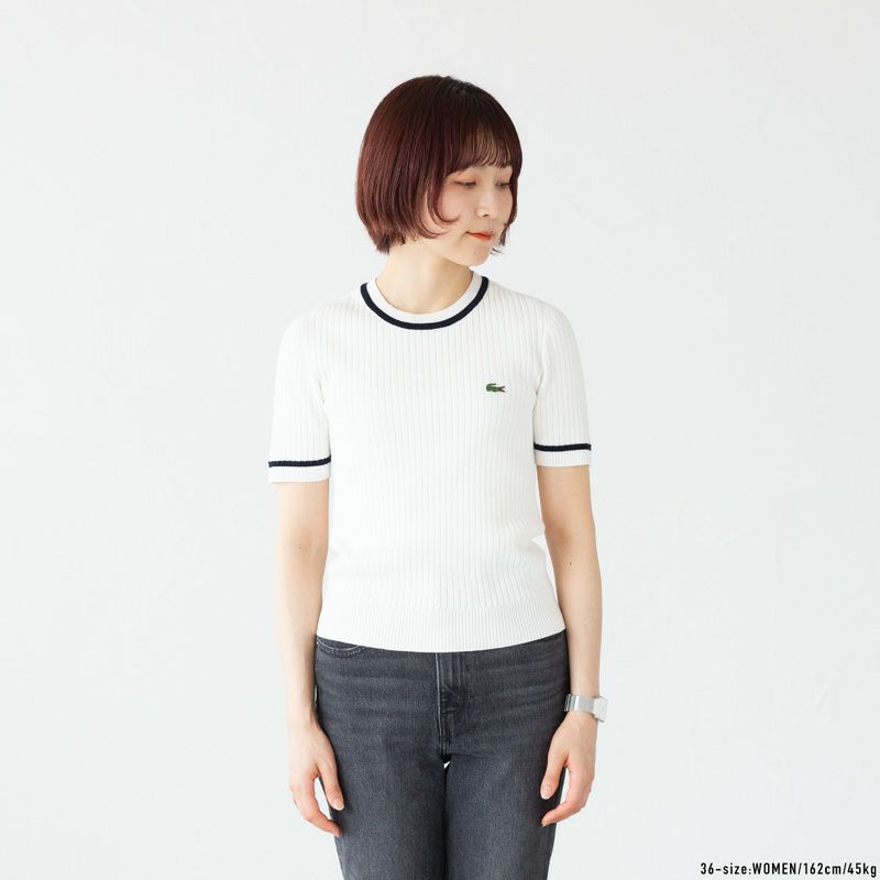 他の画像を見る 伸縮性◎。しっかりリブニットの上品カットソー。 ラコステ 3D リブ ニット Tシャツ LACOSTE AF6946-10 レディース サマーニット 半袖 販売価格 ¥ 18,700 税込 カートに入れる お気に入りに登録する