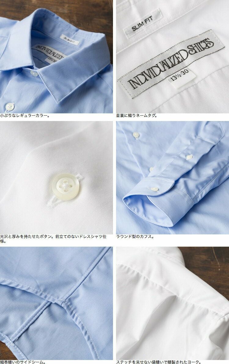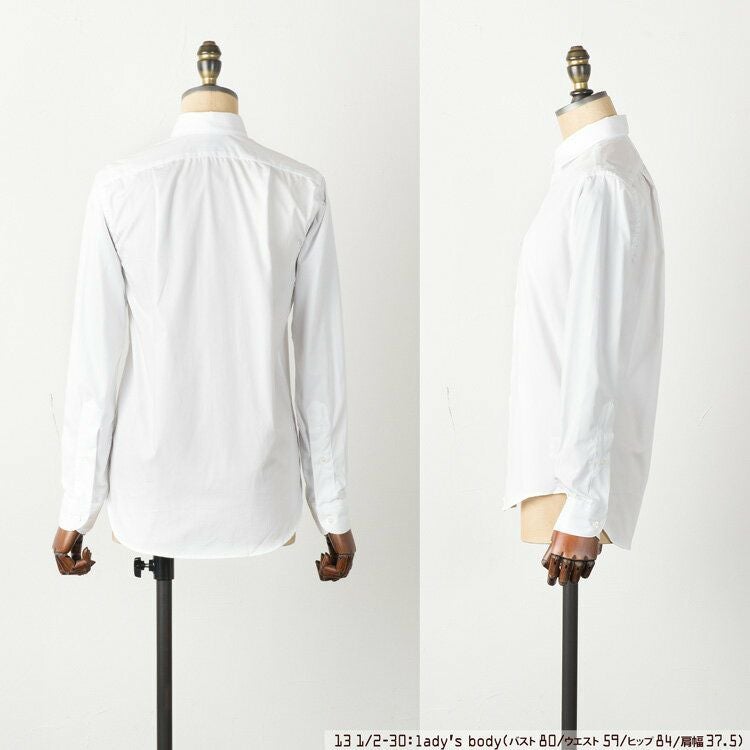 小ぶりなレギュラーカラーをそなえた、ドレスシャツをおもわせるシンプルでスマートな印象のアイテムです。