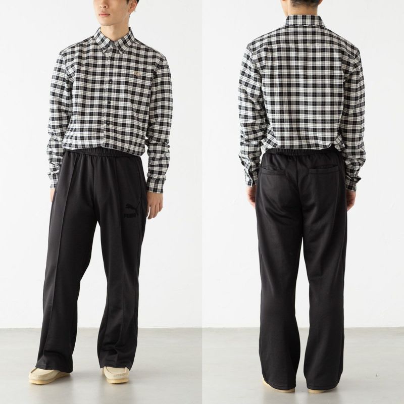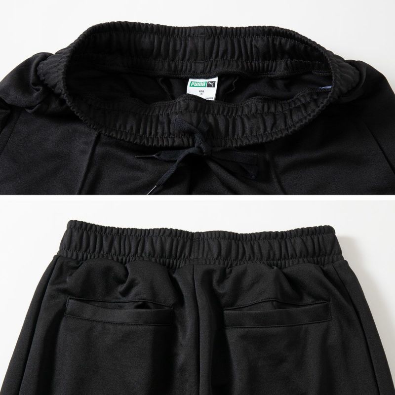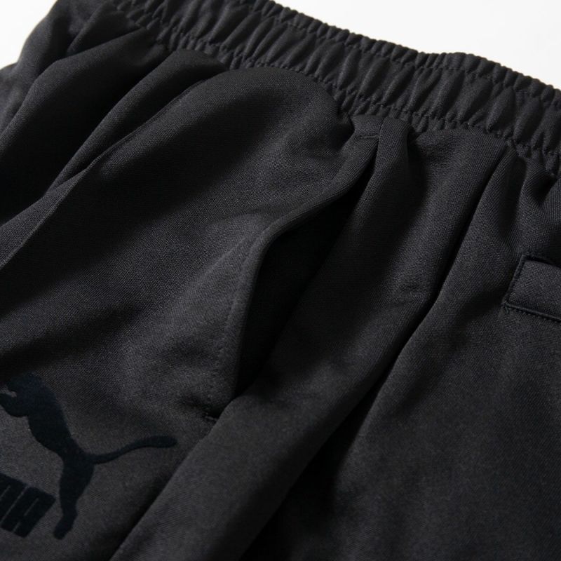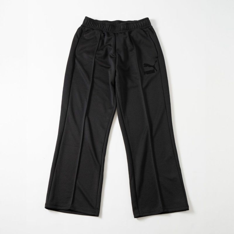 毎シーズン進化を重ねファッションアイテムとして人気を博すPUMAジャージ、T7シリーズ。今回はオールブラックで大人な印象に仕上げたワイドトラックパンツ。