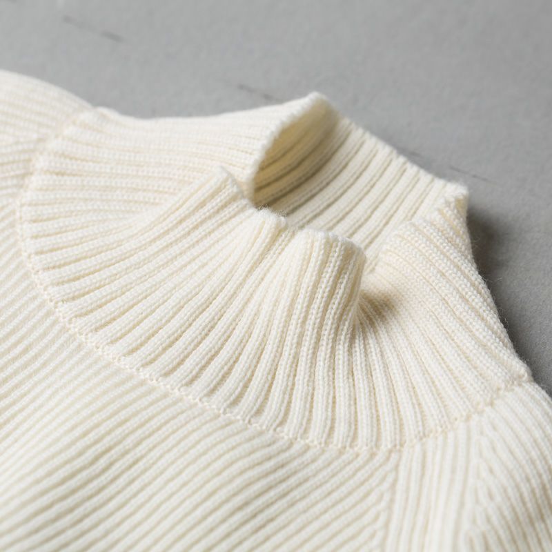 スッキリとした印象ながらも首元が暖かいハイネック。