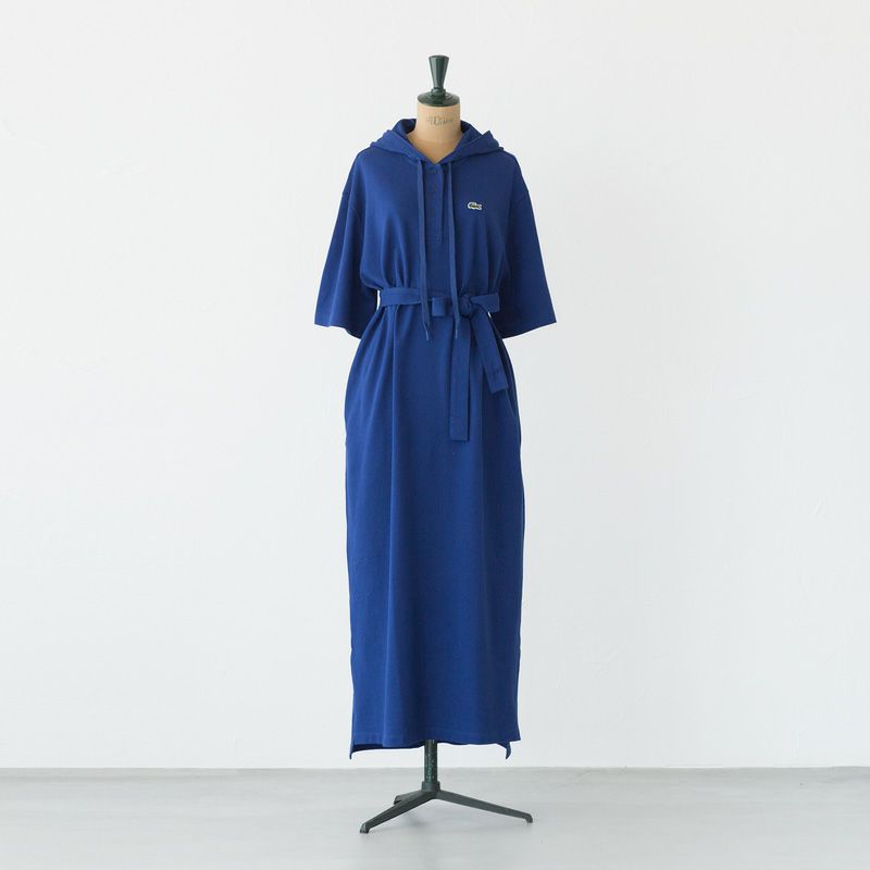 LACOSTE オーガニックコットン鹿の子のロングドレス。