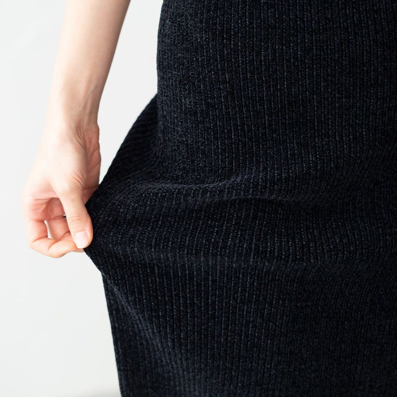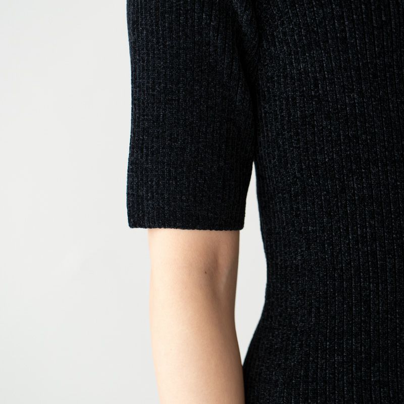 ベロアのような光沢のあるシェニールヤーンを使用したニットワンピース。