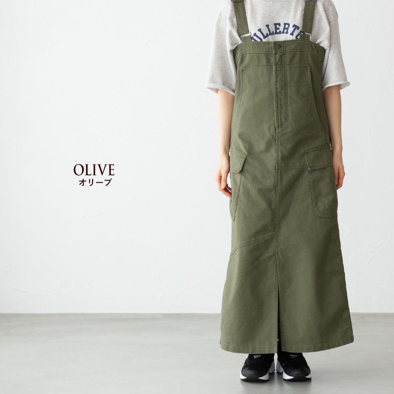 しっかりコットンツイル生地のミリタリージャンパースカート。