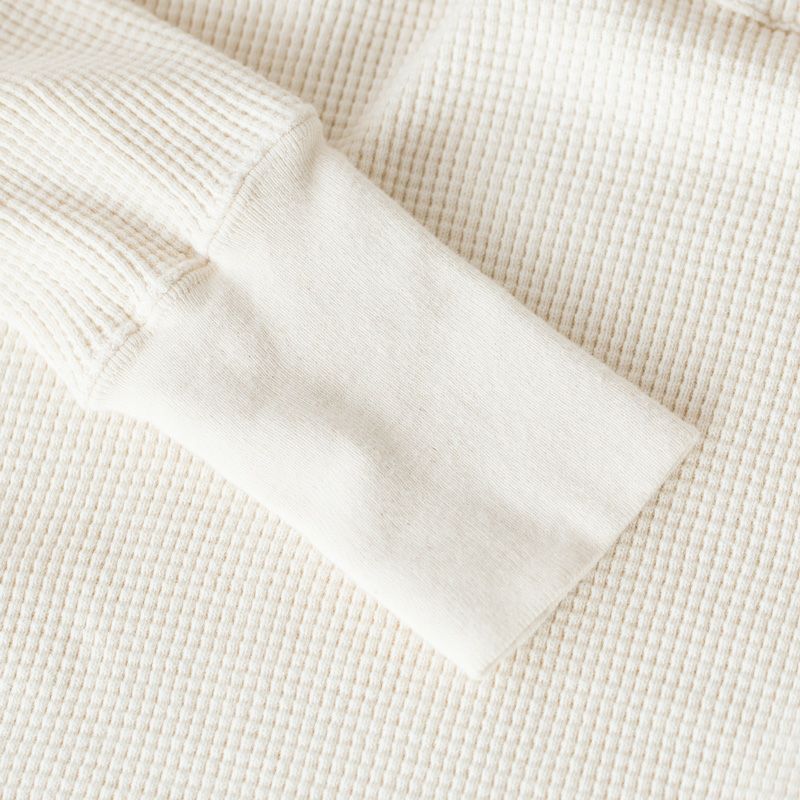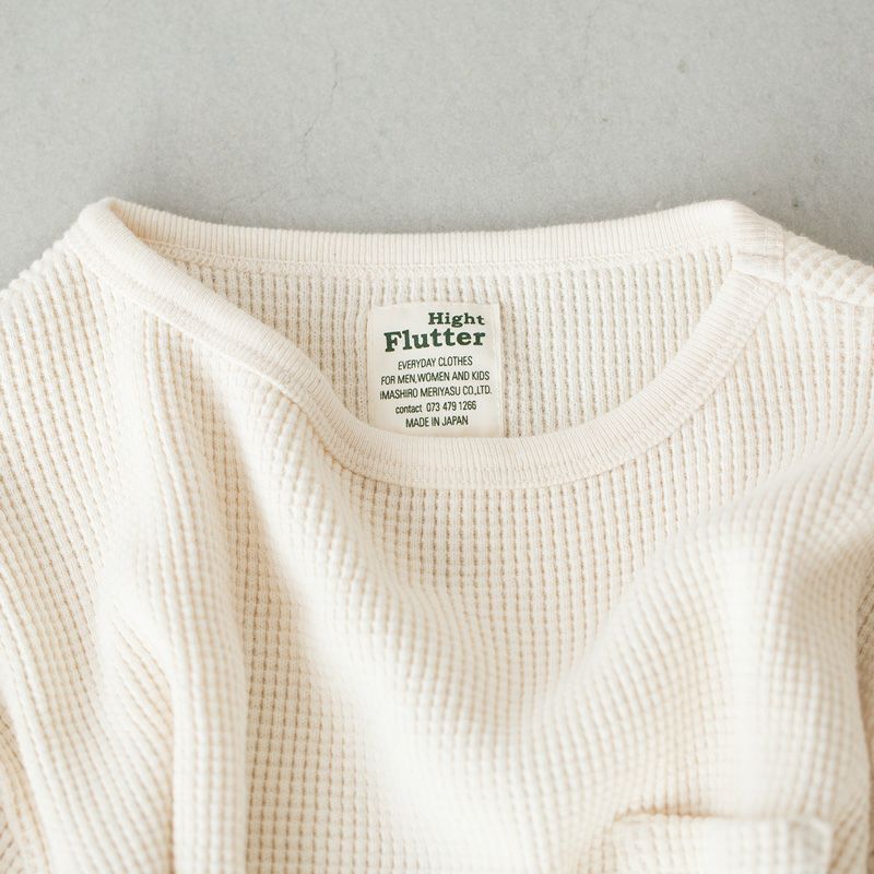 生地メーカー発のファクトリーブランドである「Hight Flutter」のワッフル生地は、貴重な旧式のフライス機を使って編まれたクラシックな仕上がり。