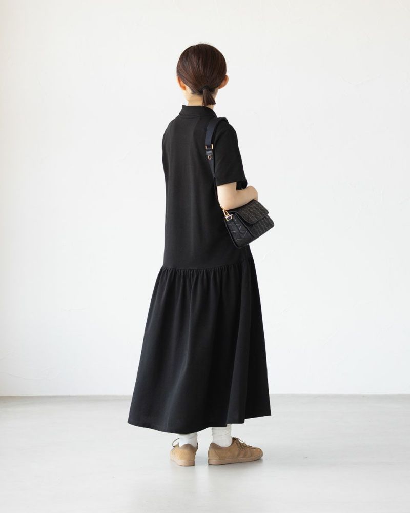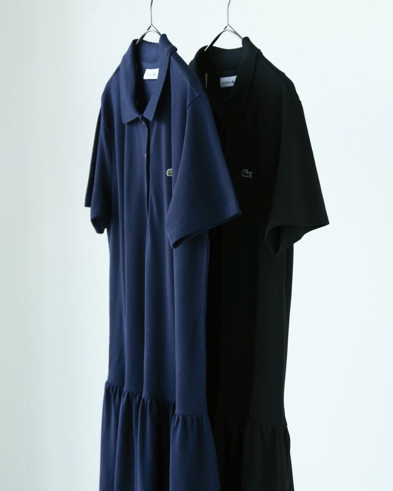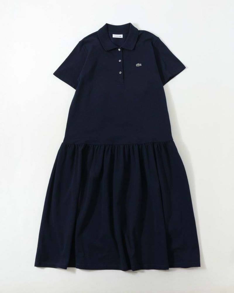 上質なコットン鹿の子をたっぷり使った、ラコステのローウエストポロドレス。ゆったりシルエットとマキシ丈でリラックス感もきちんと感も両立。