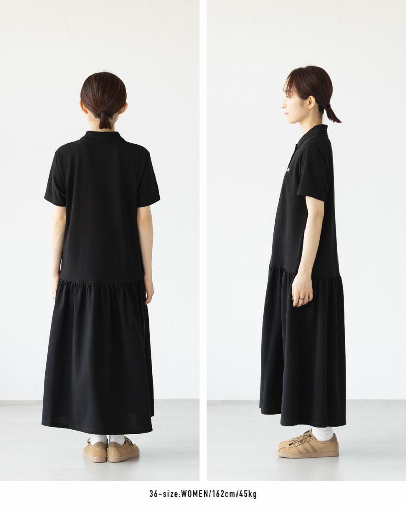 ワニロゴが胸元で小さく主張して、シンプルだけどちゃんと可愛い。スニーカーでカジュアルに、パンプスでお出かけ仕様にも、カジュアルからキレイめまで幅広い場面で着回しできます。一枚着るだけでこなれたおしゃれができる万能ワンピースです。