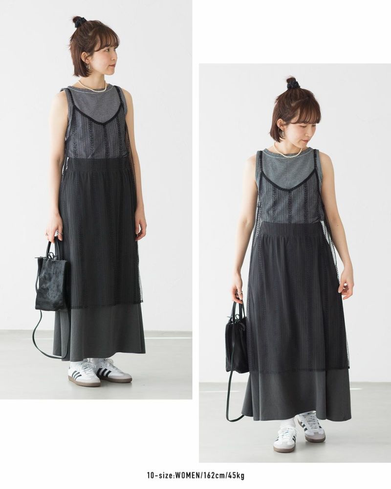 色んなスタイルに重ねて着れるシアーキャミドレス。