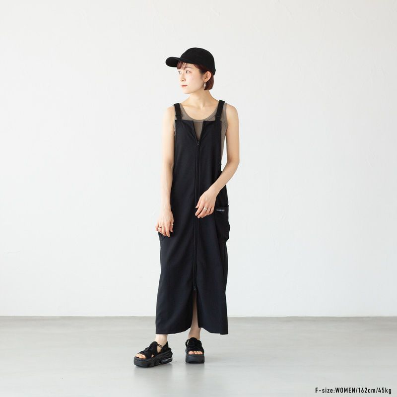 ドライなシャリ感。フロントジップの高機能ジャンパースカート。