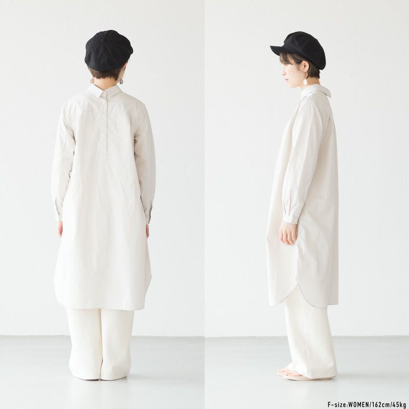 糸の段階で夾雑物や短い繊維を徹底的に取り除き、光沢に優れたコーマ糸で織り上げた上質なコットン生地。適度なハリとしなやかさを持つファブリックを使用し、vintageシャツのディテールを元にリデザインされたワンピースです。前後着用可能なので、羽織として、ウエストの共ヒモを組み合わせることでも多様な着こなしが楽しめる3WAYシャツワンピース。製品洗い加工を施し、上品かつ味のある雰囲気に仕上がっています。生地、縫製から加工仕上げまで国内仕上げの信頼のMADE IN JAPAN。