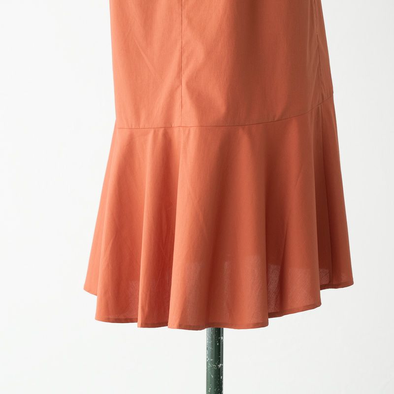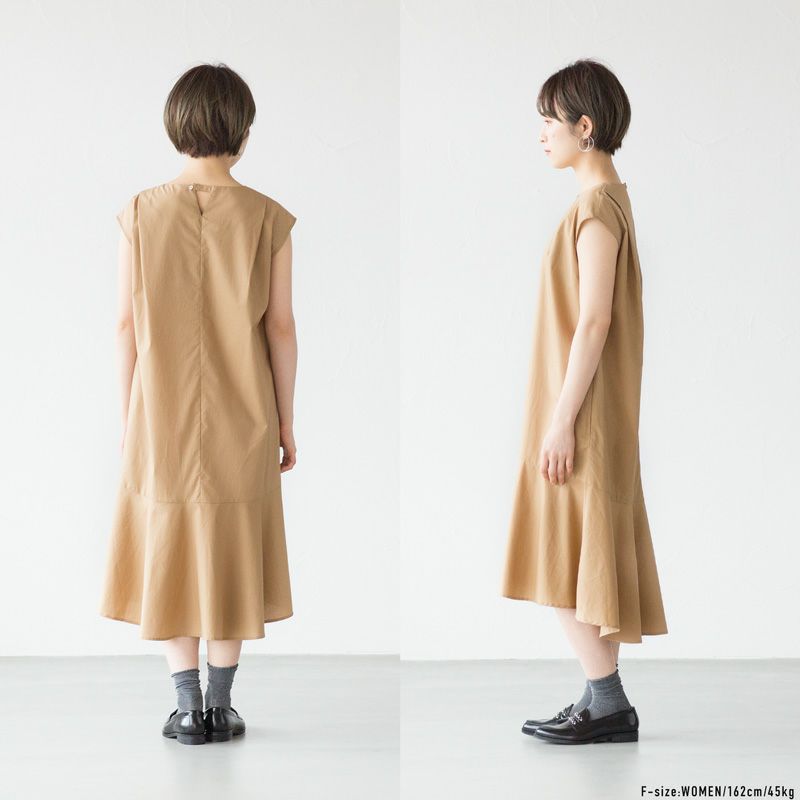 ソフトな質感と光沢をもつテンセルとコットンを混紡したマーメイドラインのワンピース。しなやかでシワになりにくく、適度なハリ感とツヤを持ち合わせているのが特長です。二の腕をほっそりと見せてくれるフレンチスリーブと立体裁断による美しいシルエットが魅力のサマードレス。裾のフレアラインと上品なデザインで、カジュアルからセミフォーマルまで幅広くお使いいただけるアイテムです。