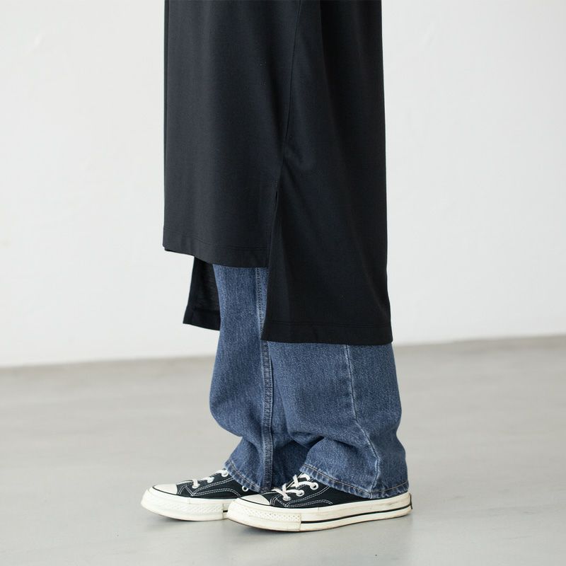 前後差がついたスリット入りのデザインでパンツやスカートをレイヤードしてもかわいい。