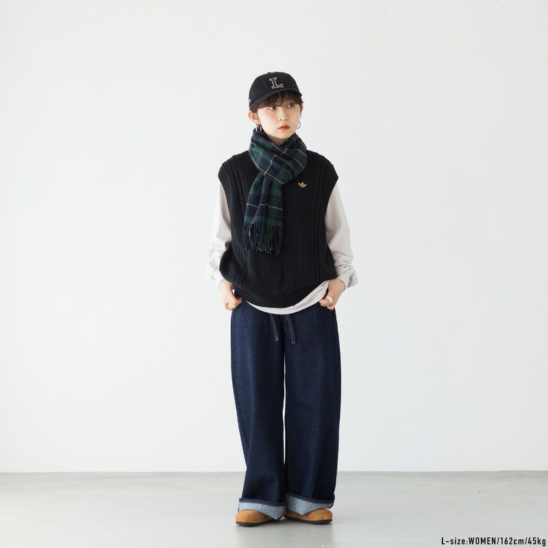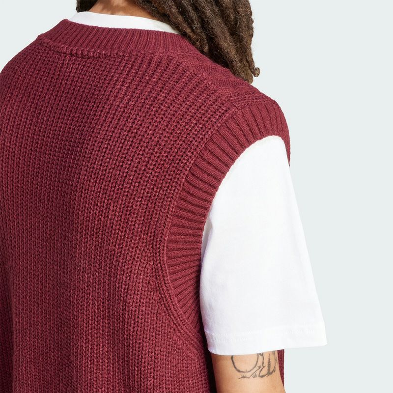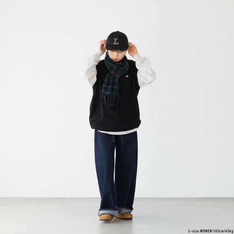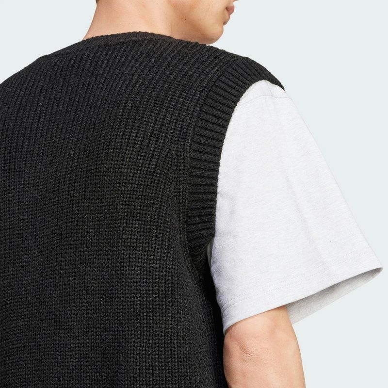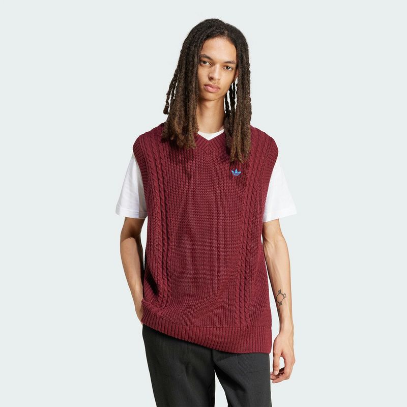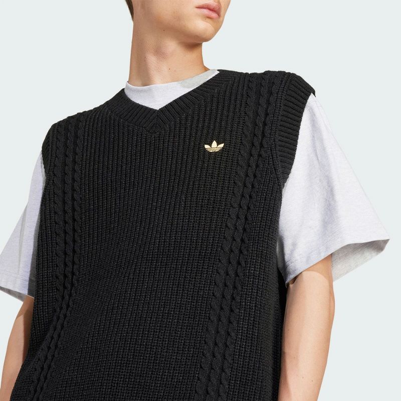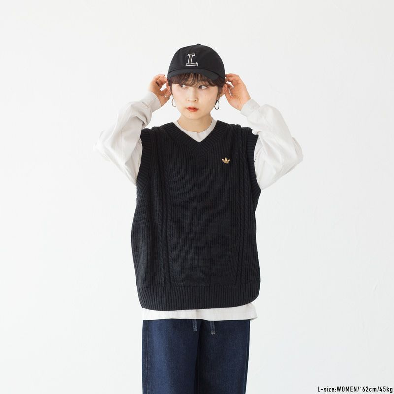 70年代に登山服として注目されたセーターを参考にデザインされたという、やや厚手のニットベスト。アディダス70'sシリーズの特徴的な配色はそのままに、ジャカードニットでクラシカルな雰囲気に仕上げています。
