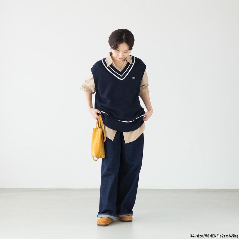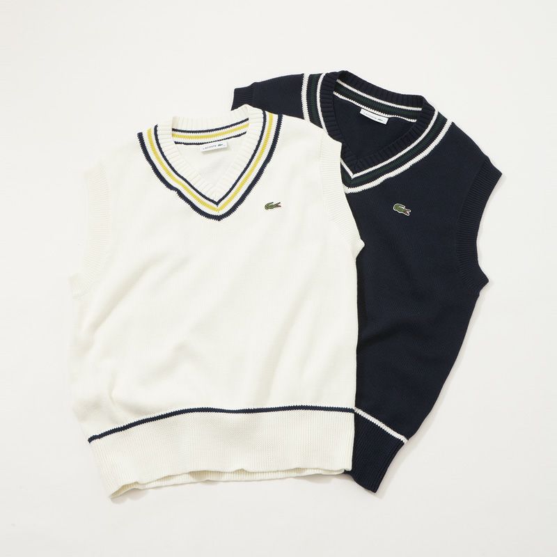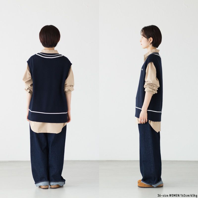 季節問わず着まわしできるチルデンニットベストが入荷。