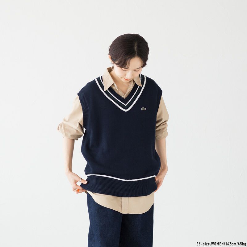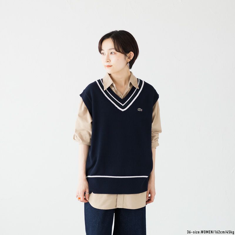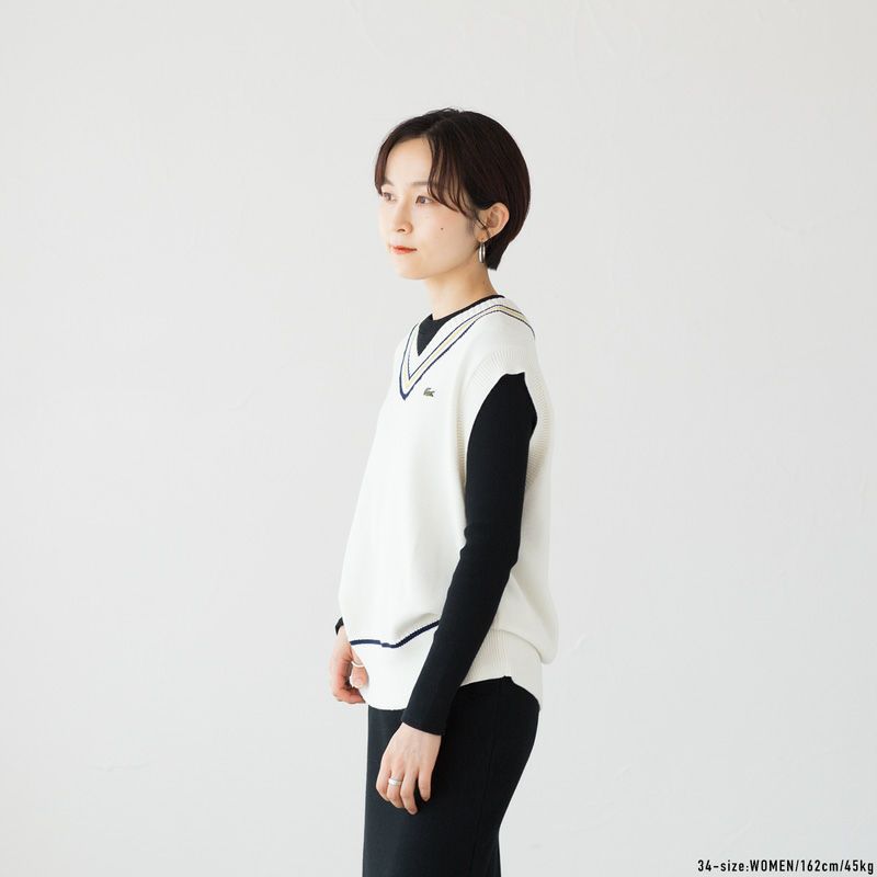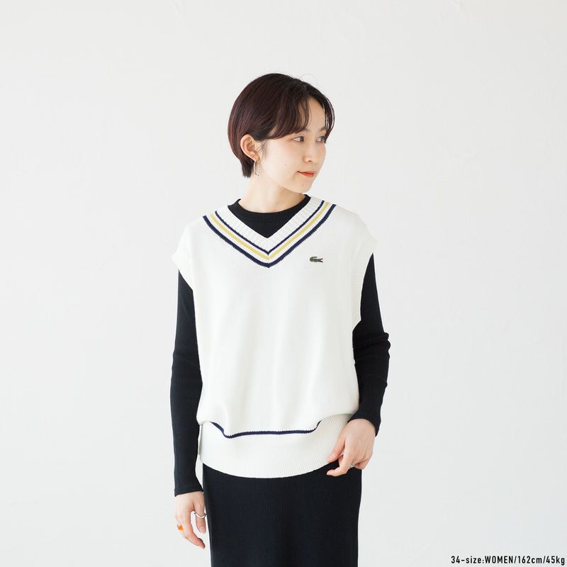 ラコステ コットンポリ ニット チルデンベスト LACOSTE AF010J-99 レディース