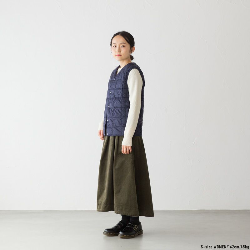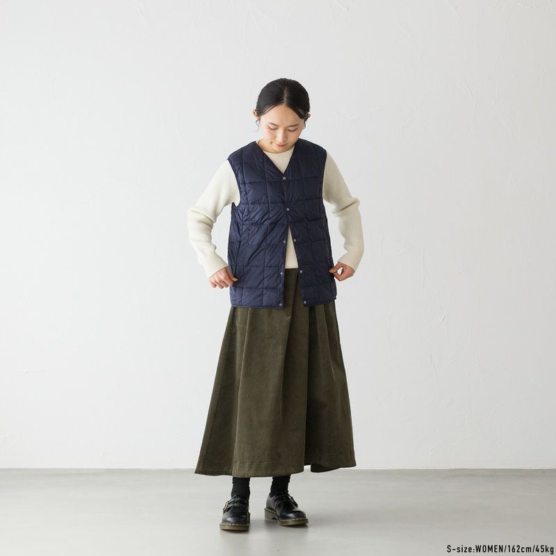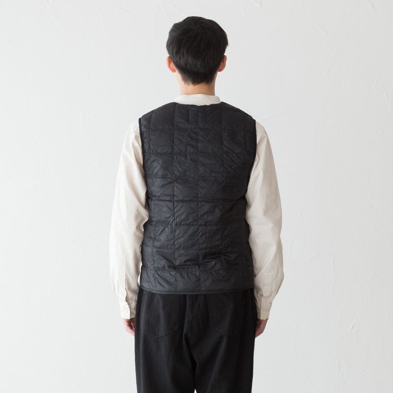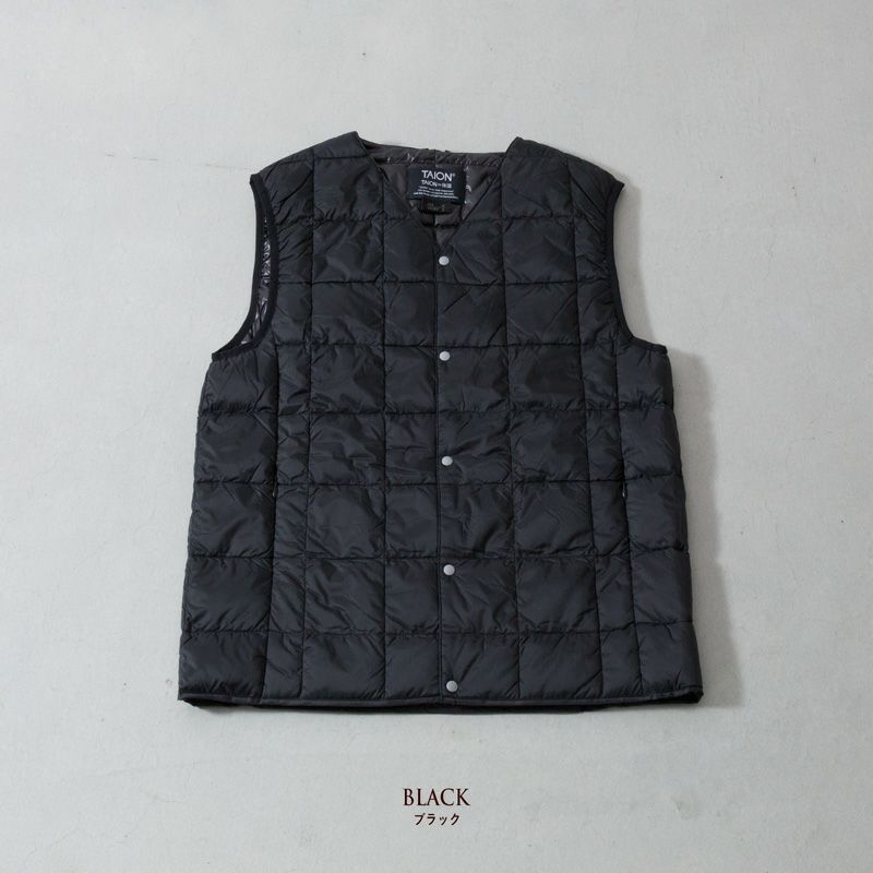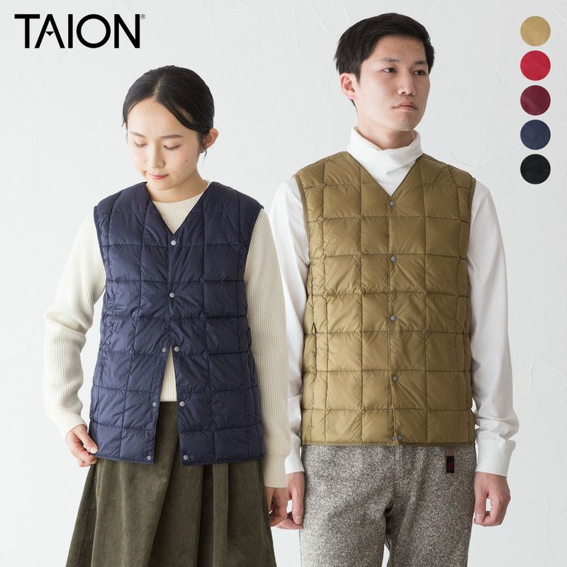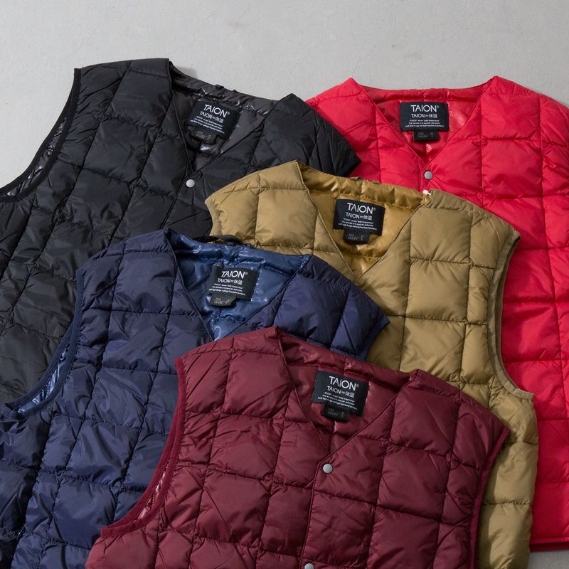 話題沸騰のダウンウェアブランド「TAION」の定番インナーダウンベスト。ジャケットやコートの下に着るのはもちろん、Tシャツ・シャツ・パーカーなどの上にも気軽に羽織れる、軽くて暖かく着回しやすいシンプルなデザインが特徴です。