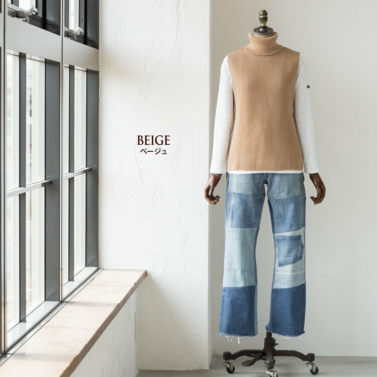 こちらは網目の詰まった8ゲージの畦編みが暖かい、上品な印象のタートルネックベストです。