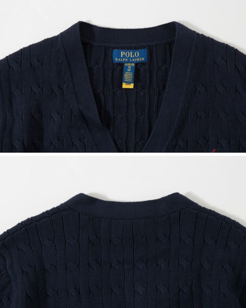 クラシカルなテイストで着こなせる名作、ラルフローレンのケーブルニットシリーズ。こちらは多彩なレイヤードを楽しめるボーイズ規格のカーディガンです。