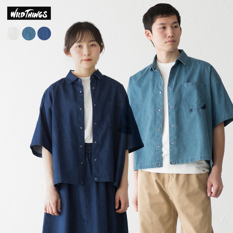 他の画像を見る WILD THINGS 夏涼しいボックスシルエットのデニムシャツ。 ワイルドシングス レディース シェルテック デニム 半袖シャツ 冷感素材 速乾 UVカット WTW22009SG メンズ・ユニセックス対応 販売価格 ¥ 10,780 税込 カートに入れる お気に入りに登録する